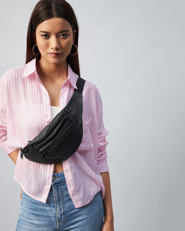 Chimpaaanzee Women Viscose Pink & White Striped Oversized Fit Shirt