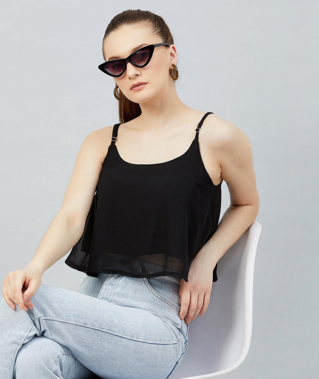Chimpaaanzee Georgette Noodle Strap Crop Top