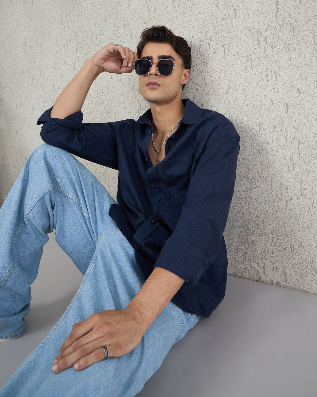 Chimpaaanzee Men Navy Oversized Fit Shirt