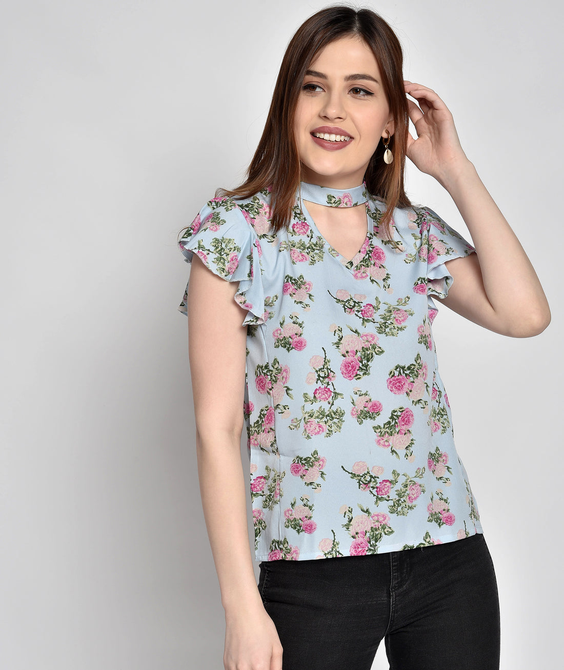 Chimpaaanzee Women Flower Printed Choker Neck Purple Top
