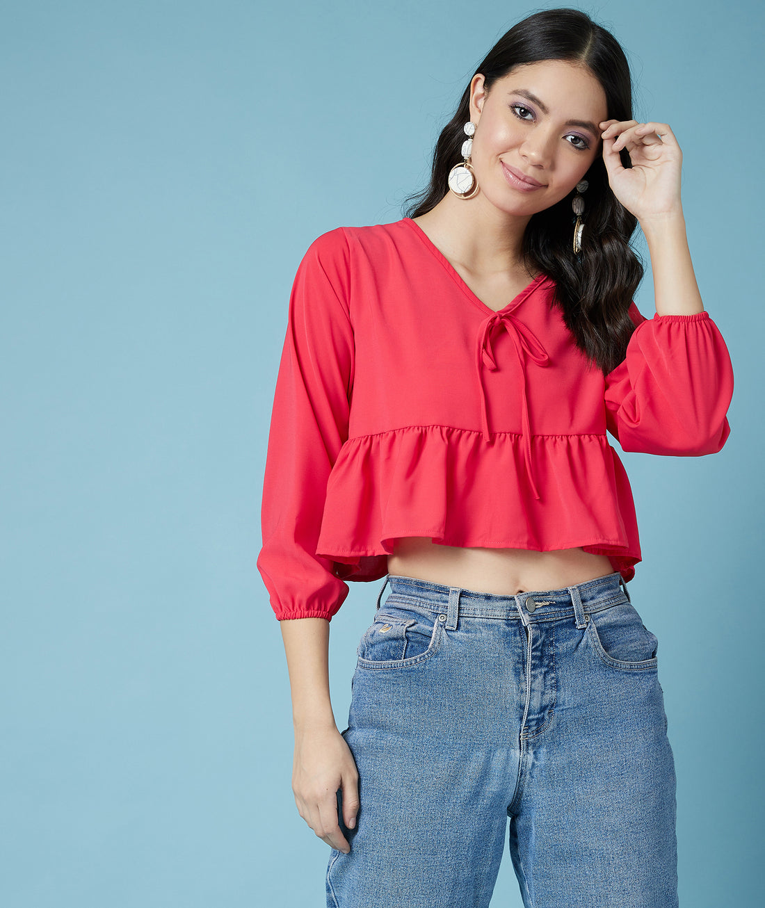 Chimpaaanzee Women Babydoll Cropped Pink Top