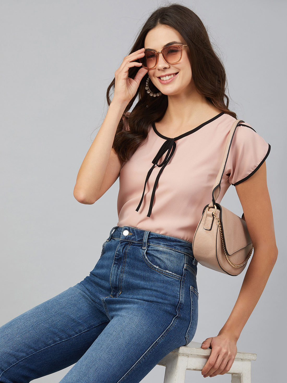 Chimpaaanzee Women Light Pink Lap Over Sleeve Top