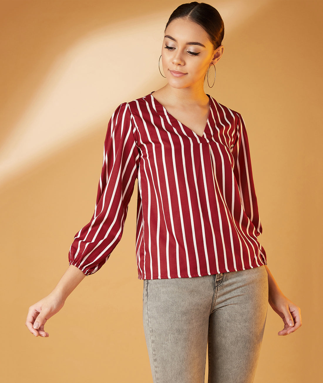 Chimpaaanzee Women Long Sleeve Striped Crepe Top