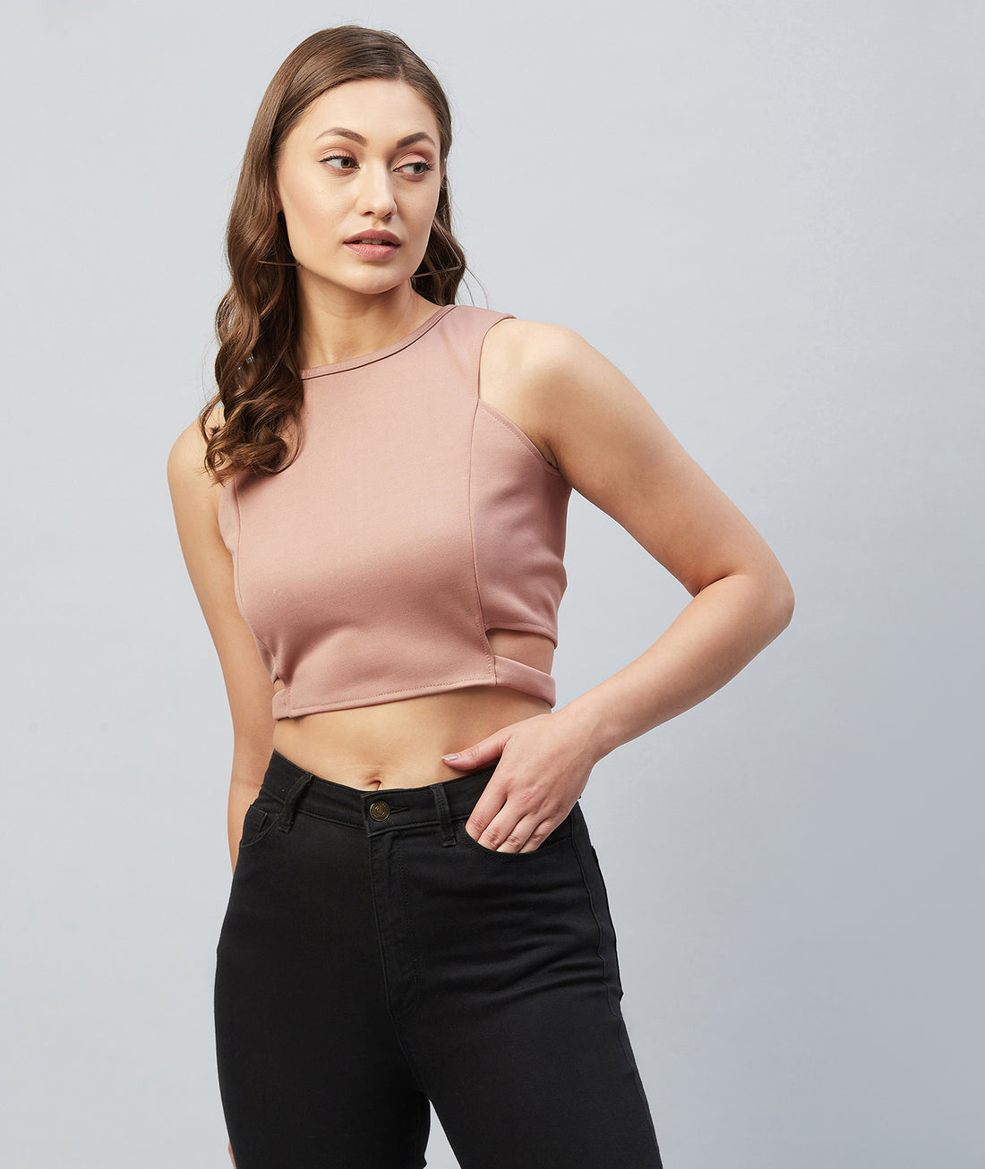 Chimpaaanzee Women Pink Solid Bodycon Crop Top