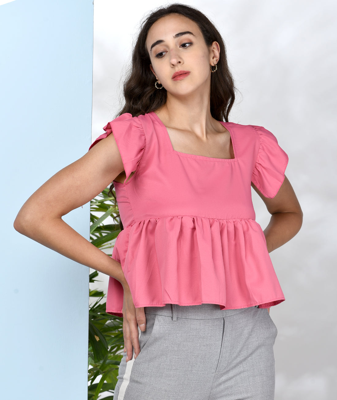 Chimpaaanzee Women Pink Solid Peplum Style Top