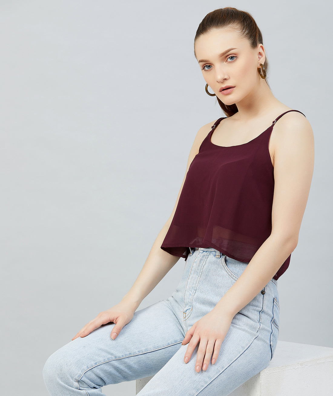 Chimpaaanzee Women Purple Georgette Noodle Strap Crop Top