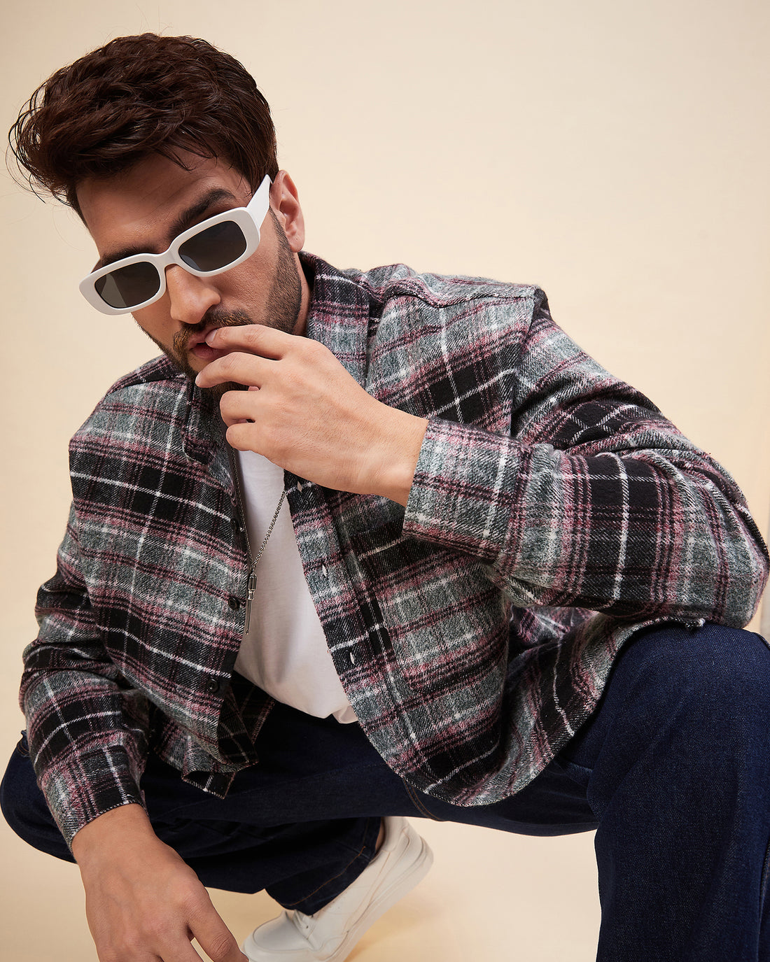 Chimpaaanzee Men Grey & Black Oversized Fit Shirt