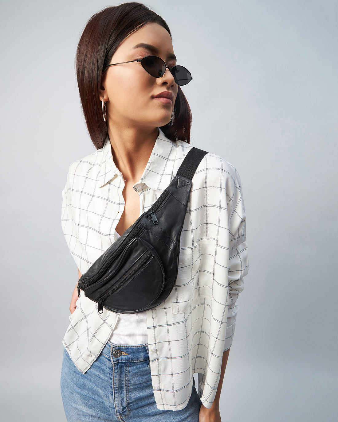 Chimpaaanzee Women Viscose White & Black Spakle Checkered Fully Cropped Shirt
