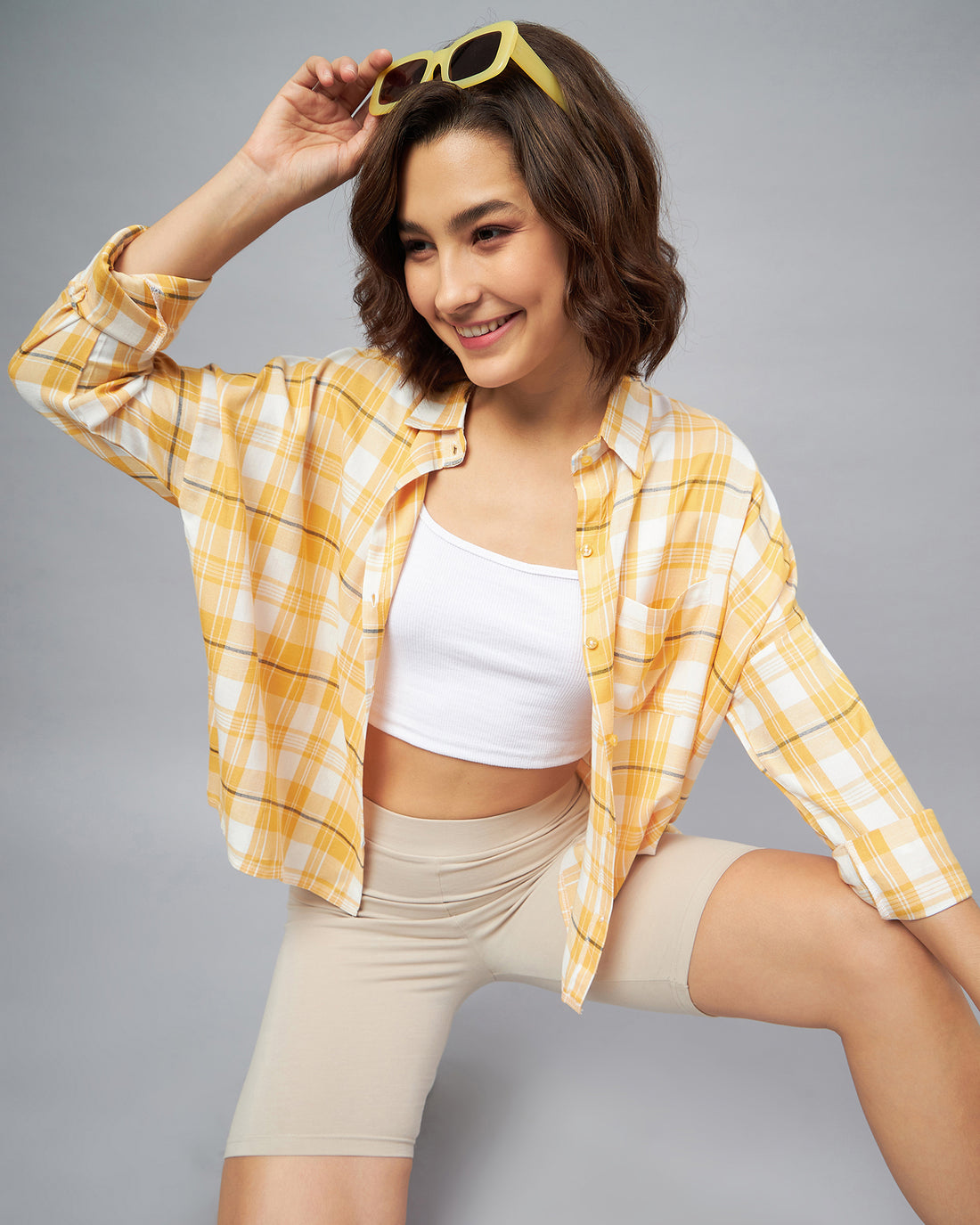 Chimpaaanzee Women Yellow Crop Oversized Shirt
