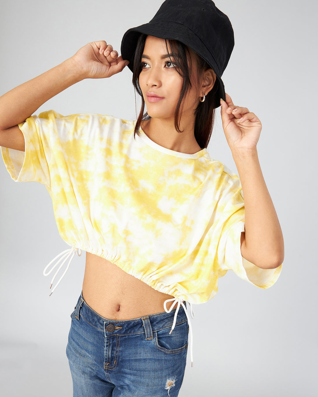 Chimpaaanzee Women Yellow Tie Dye Loose Fit Crop T-shirt