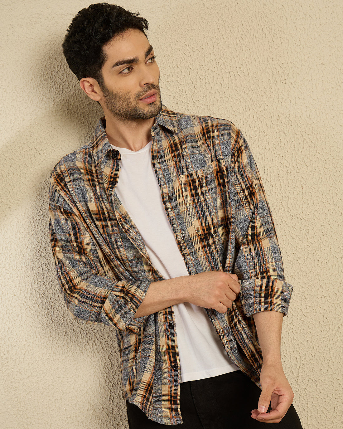 Chimpaaanzee Men Grey & Brown Oversized Fit Shirt