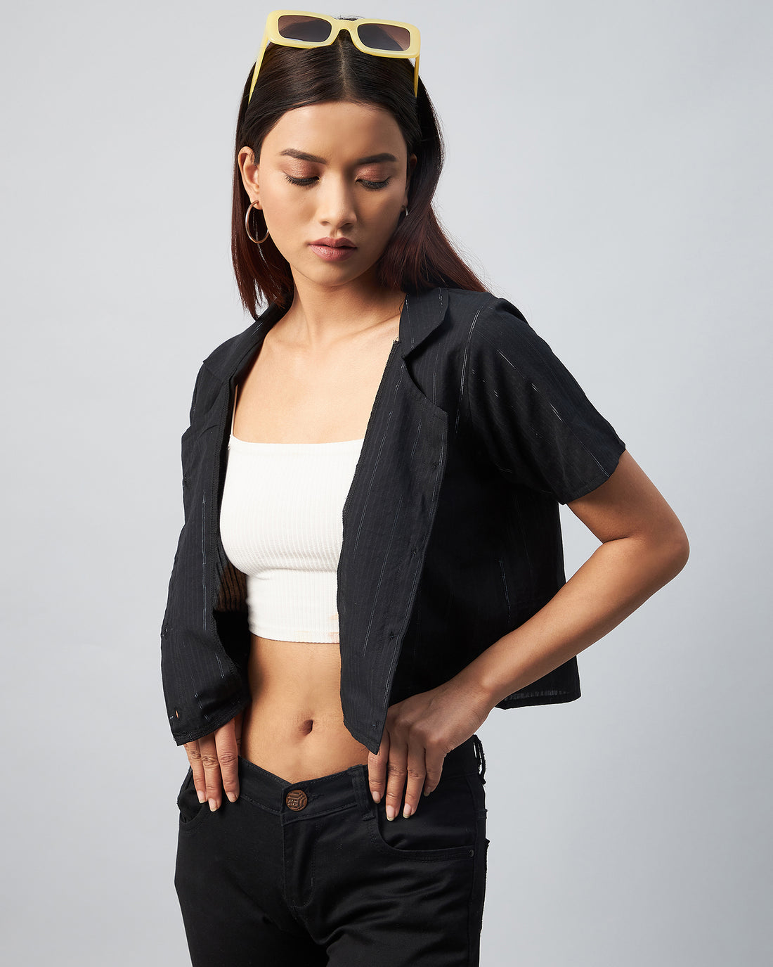 Chimpaaanzee Women Viscose Grey Solid Crop Shirt
