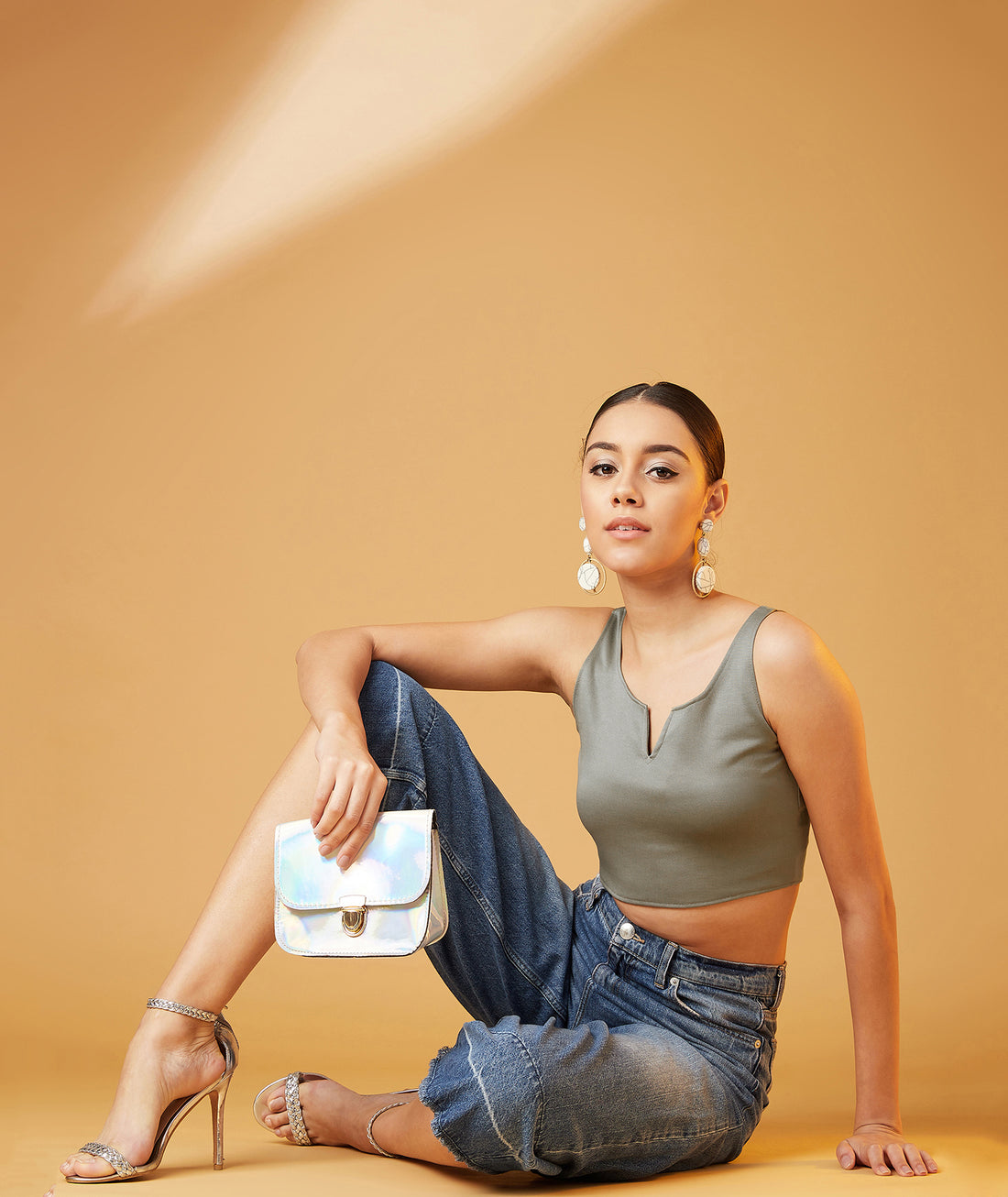 Chimpaaanzee Women Crepe Crop Tops - Blue