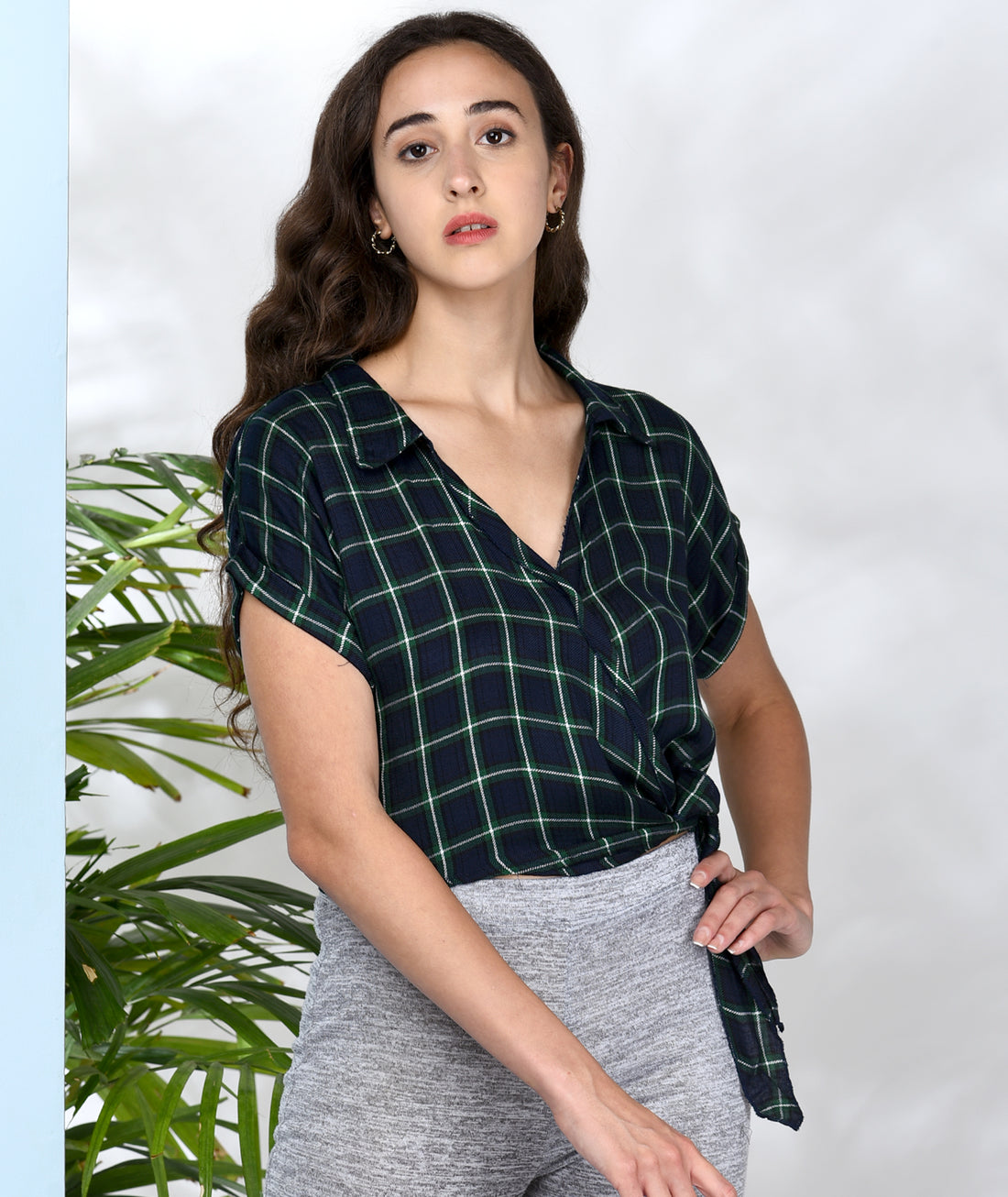 Chimpaaanzee Women Navy and Green Viscose Wrap Style Top