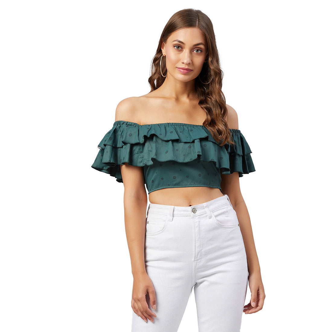 Chimpaaanzee Women Green Doted Ruffled Crop Top