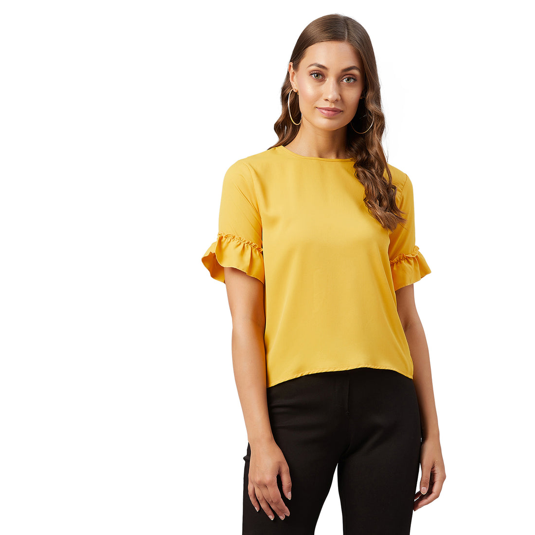 Chimpaaanzee Women Mustard Solid Ruffled sleeve Top