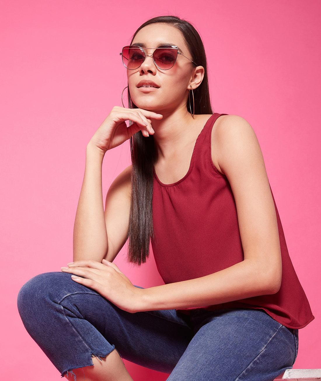 Chimpaaanzee Polyester Regular Tops - Maroon