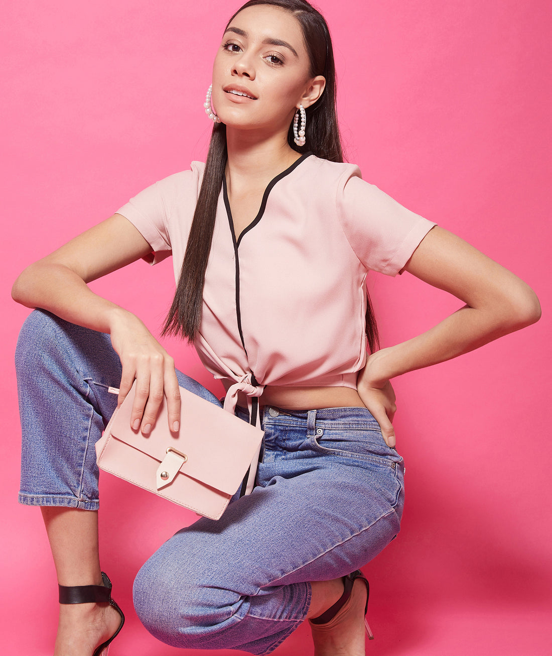 Chimpaaanzee Women Pista Green Knoted Sleeve Top