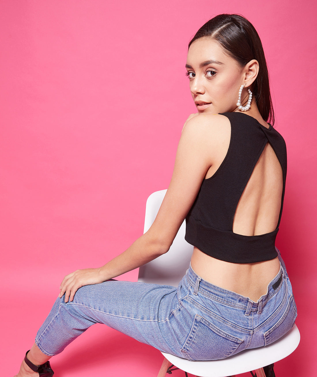 Chimpaaanzee Women Back Knots Crop Top Maroon