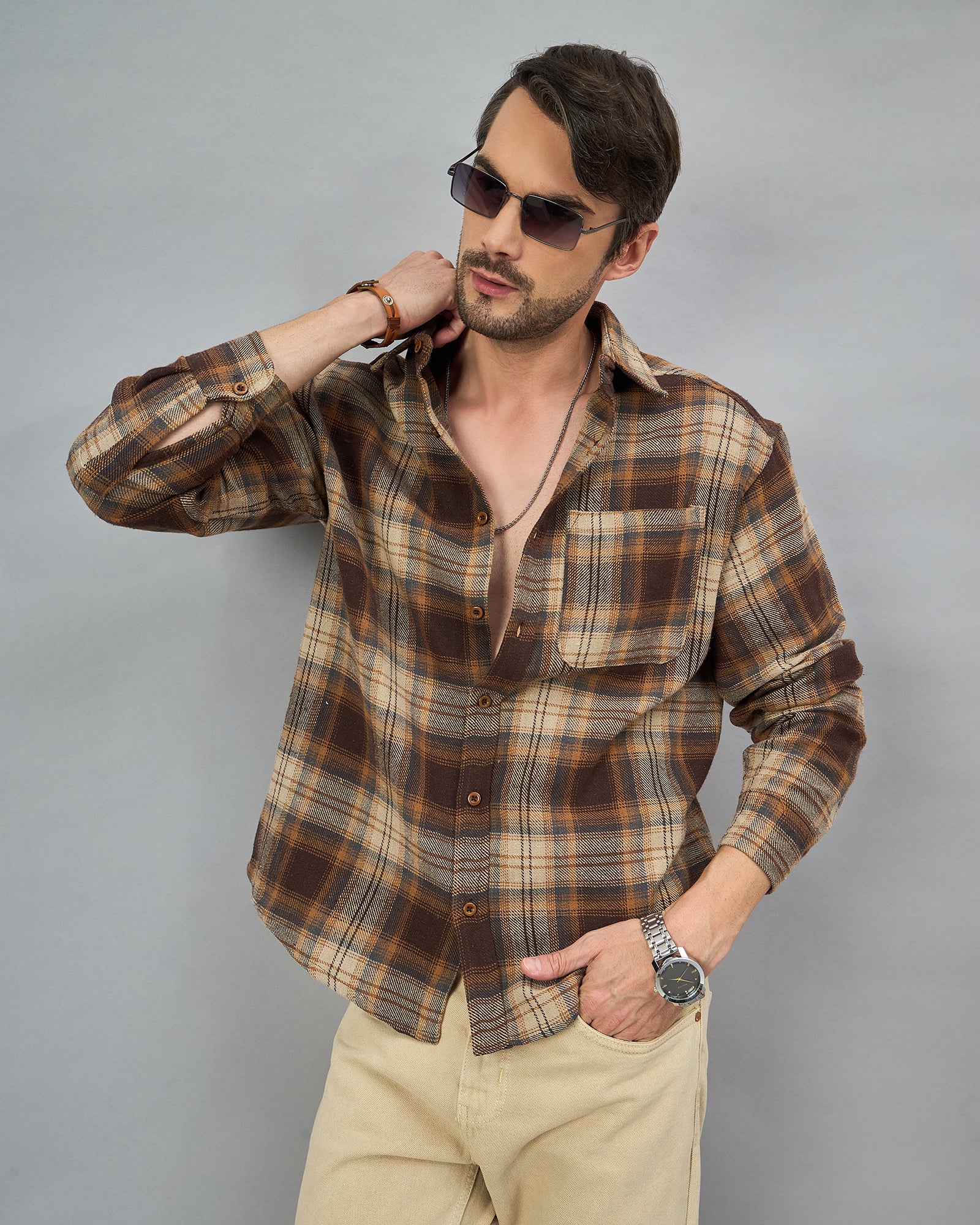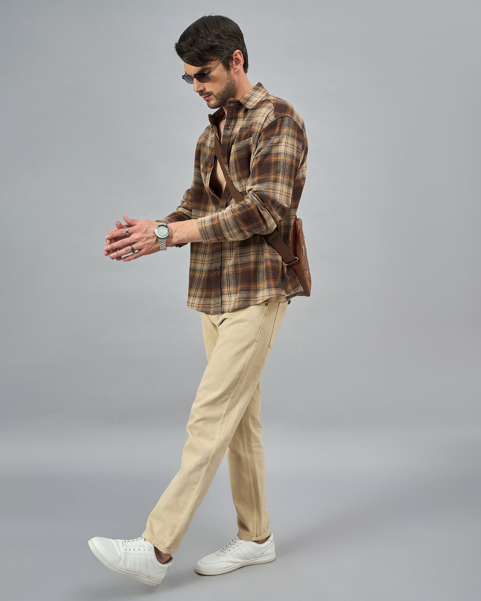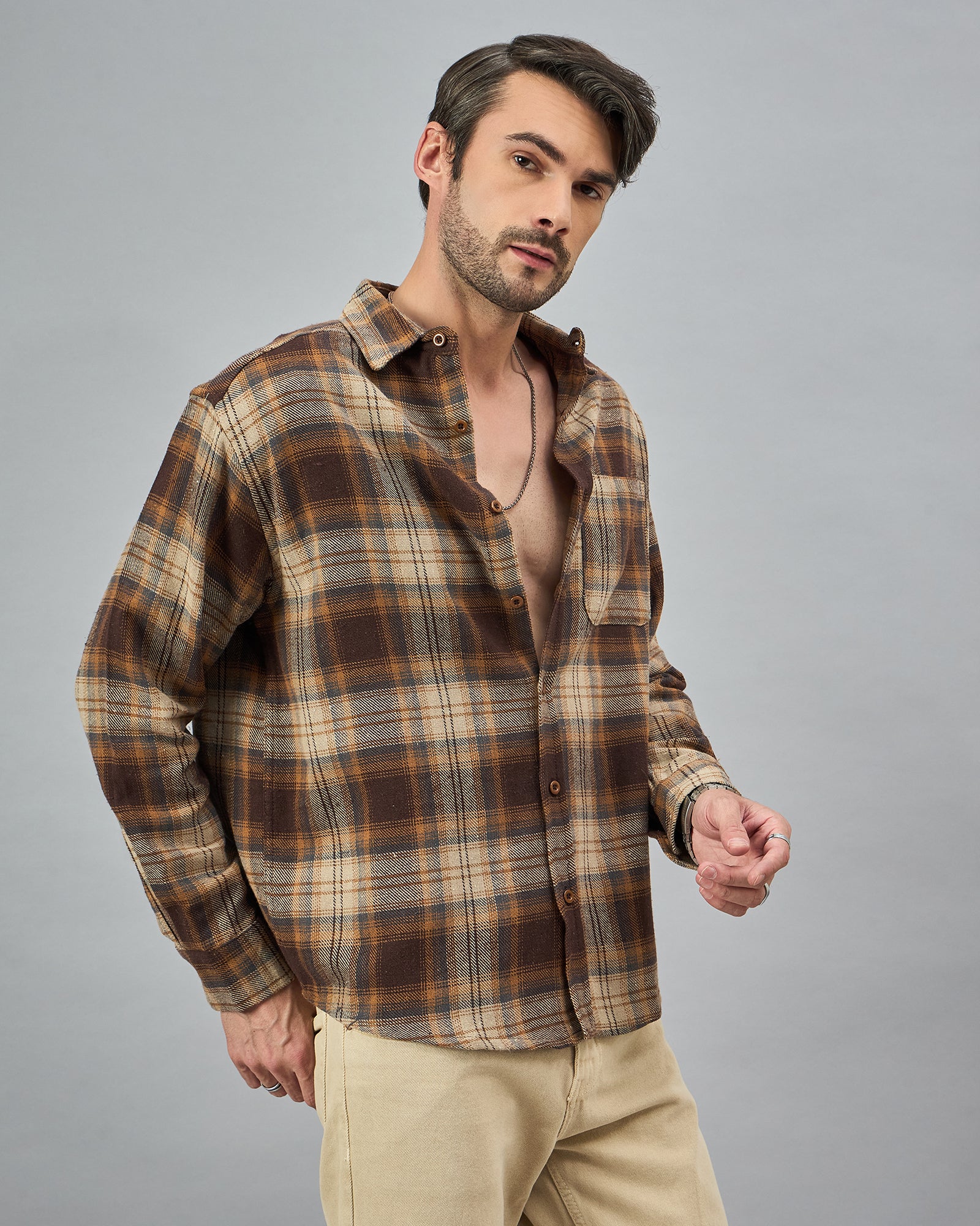 Chimpaaanzee Men Brown Oversized Fit Shirt