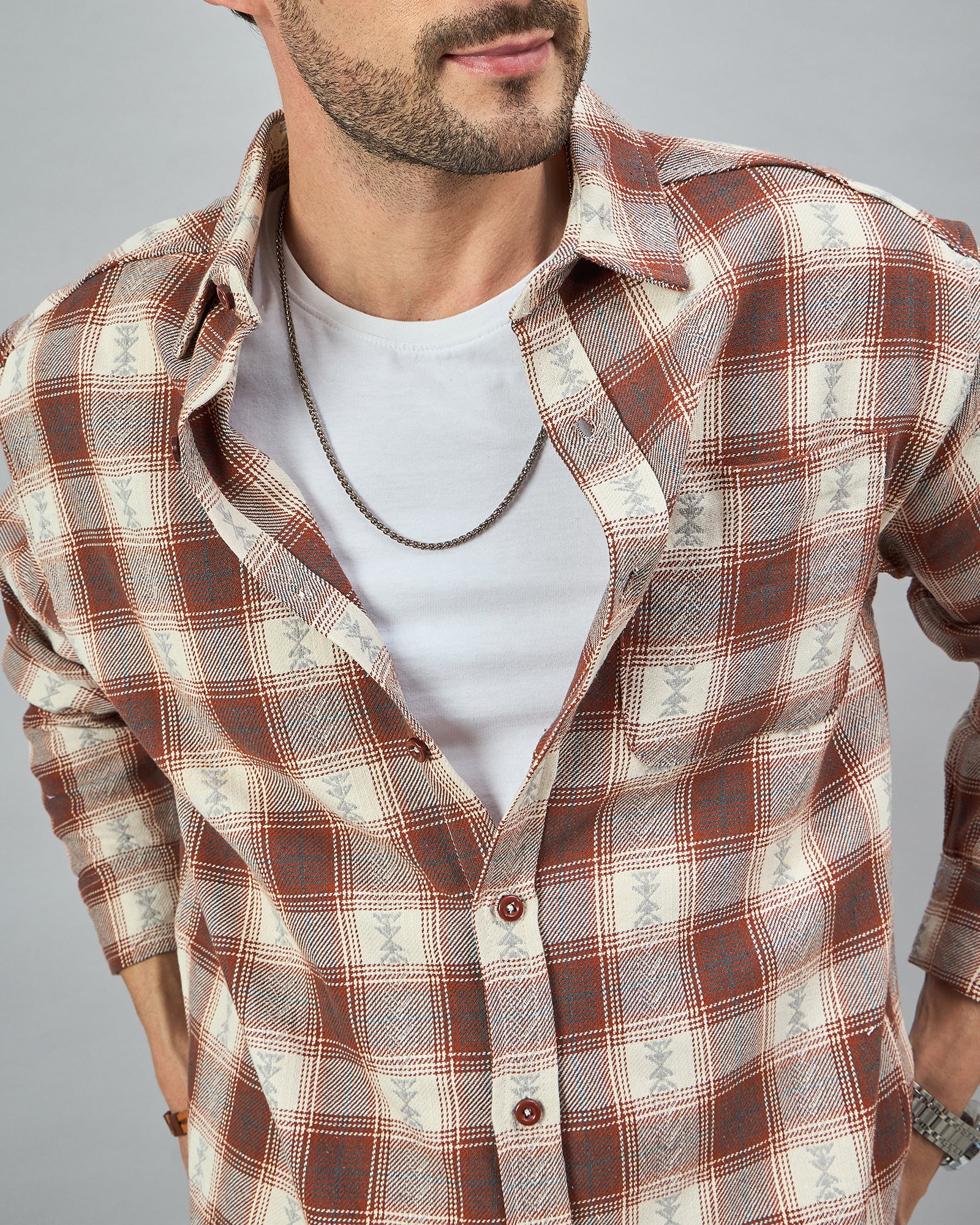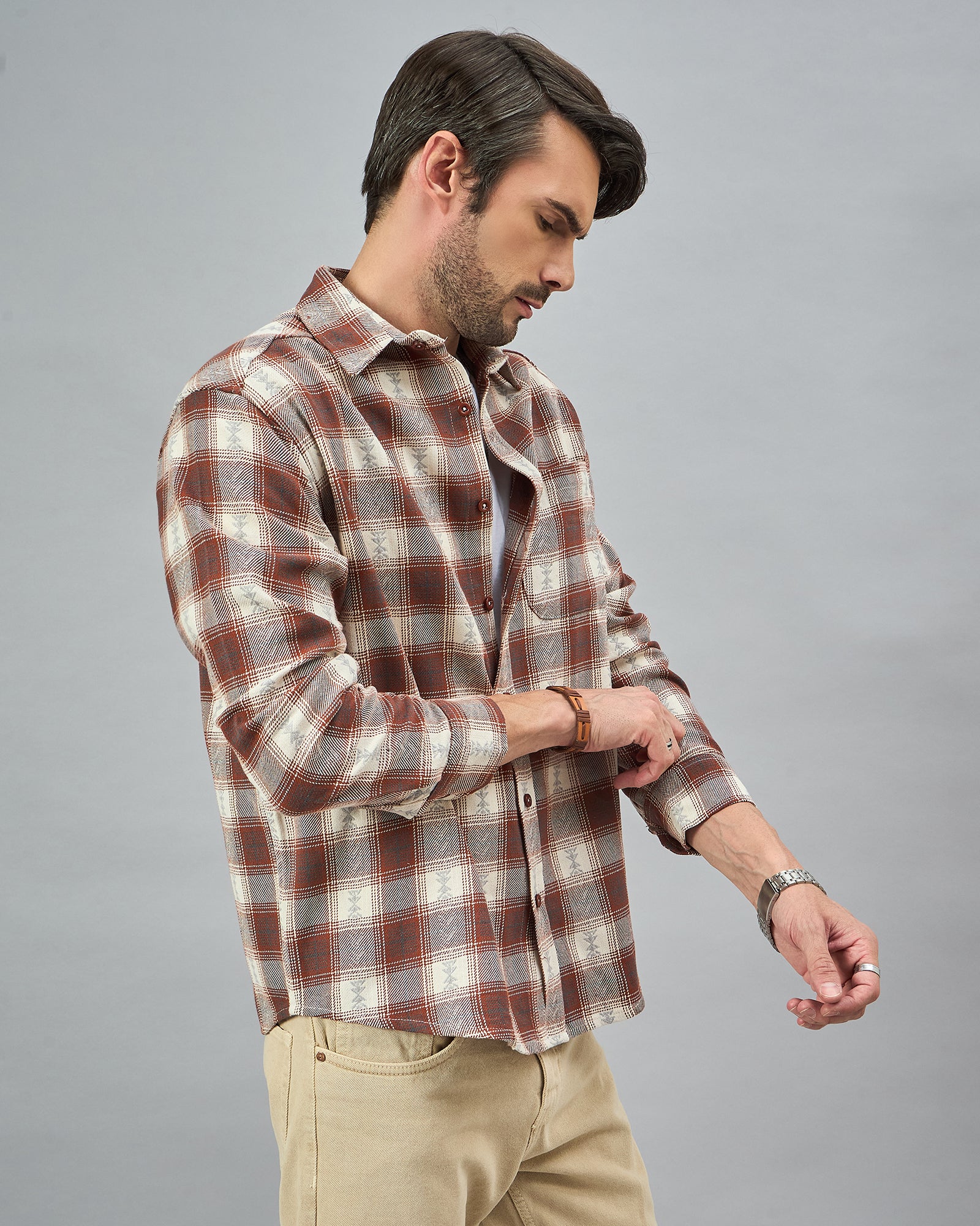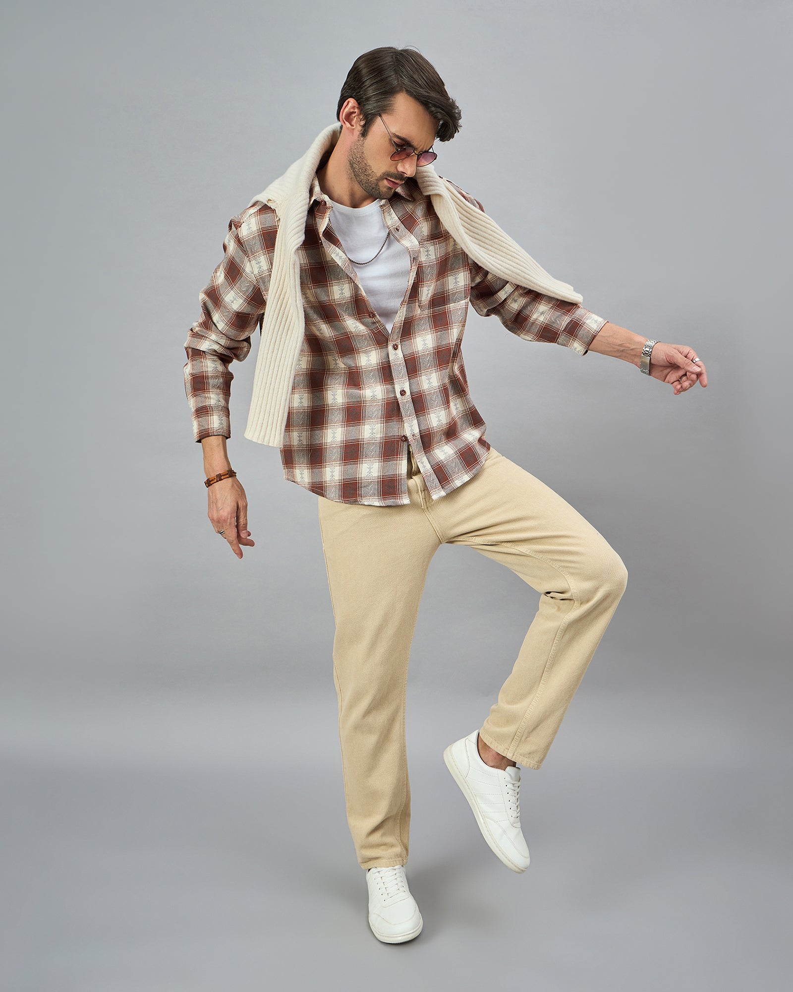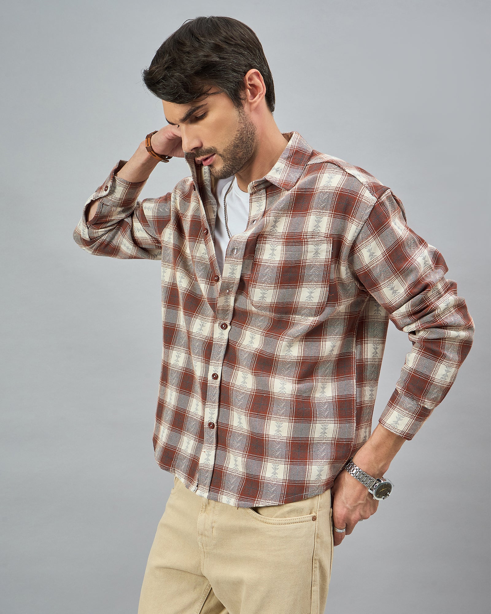Chimpaaanzee Men Brown & Beige Oversized Fit Shirt