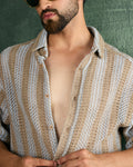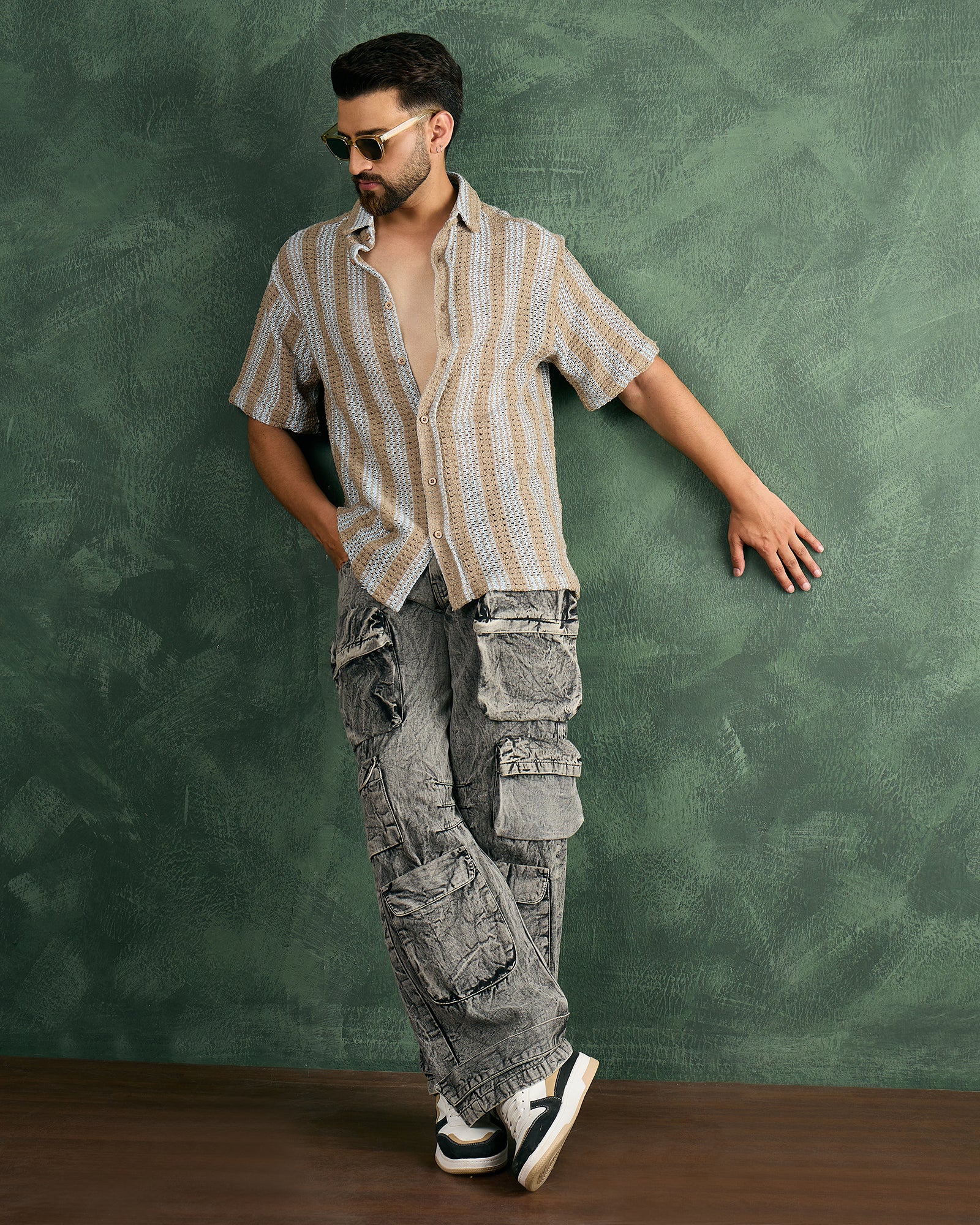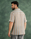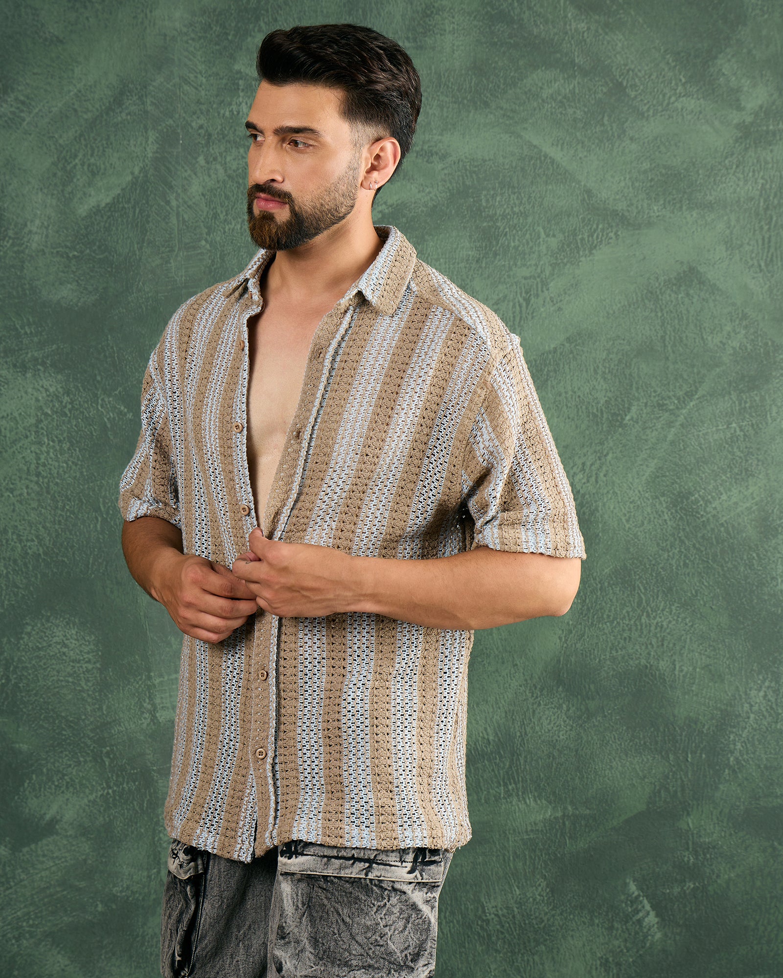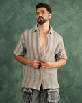 Chimpaaanzee Men Brown & Light Blue Oversized Fit Shirt