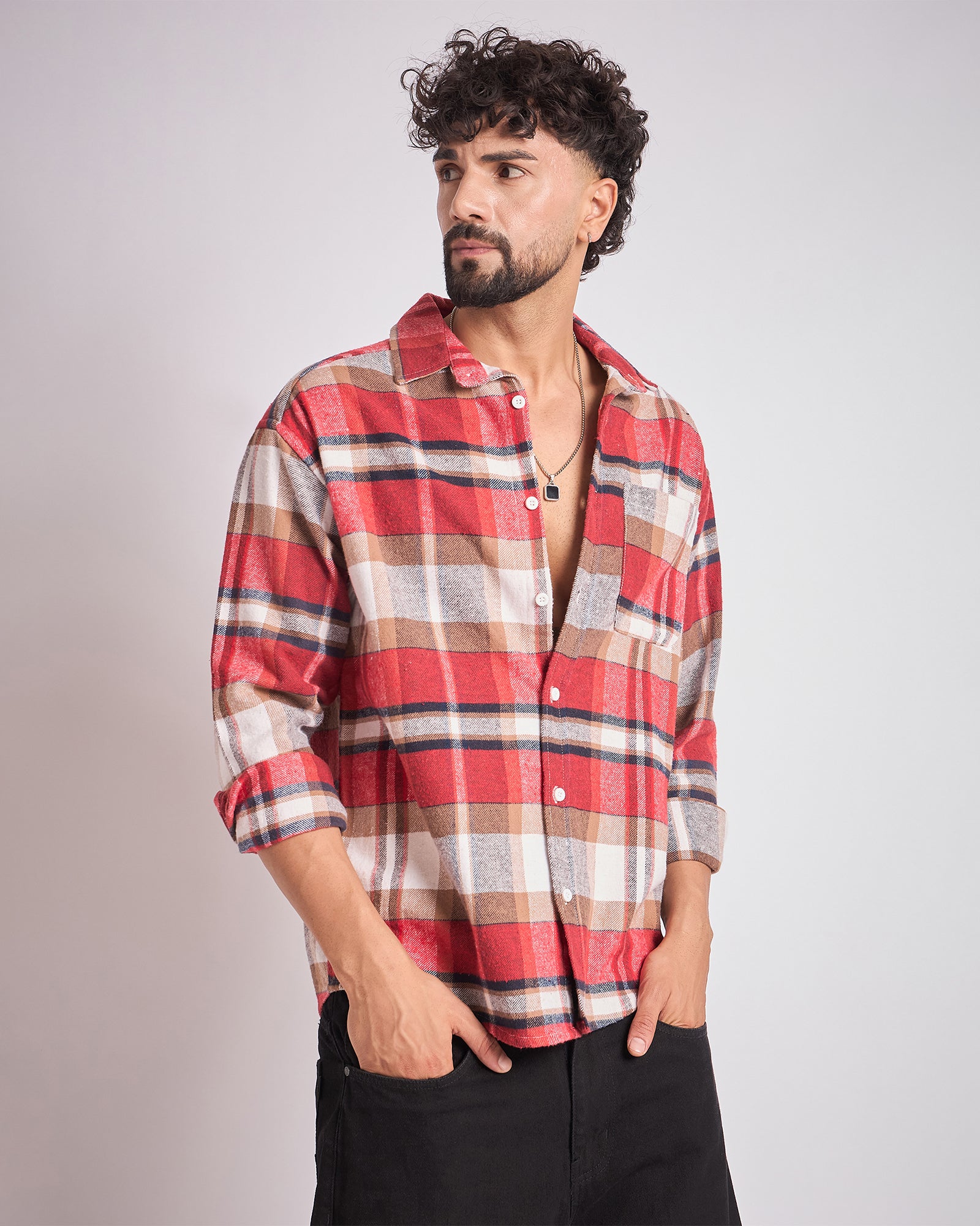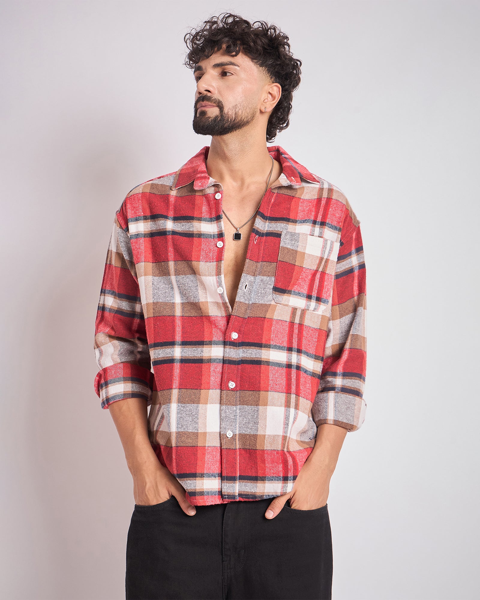 Chimpaaanzee Men Red & Brown Oversized Fit Shirt