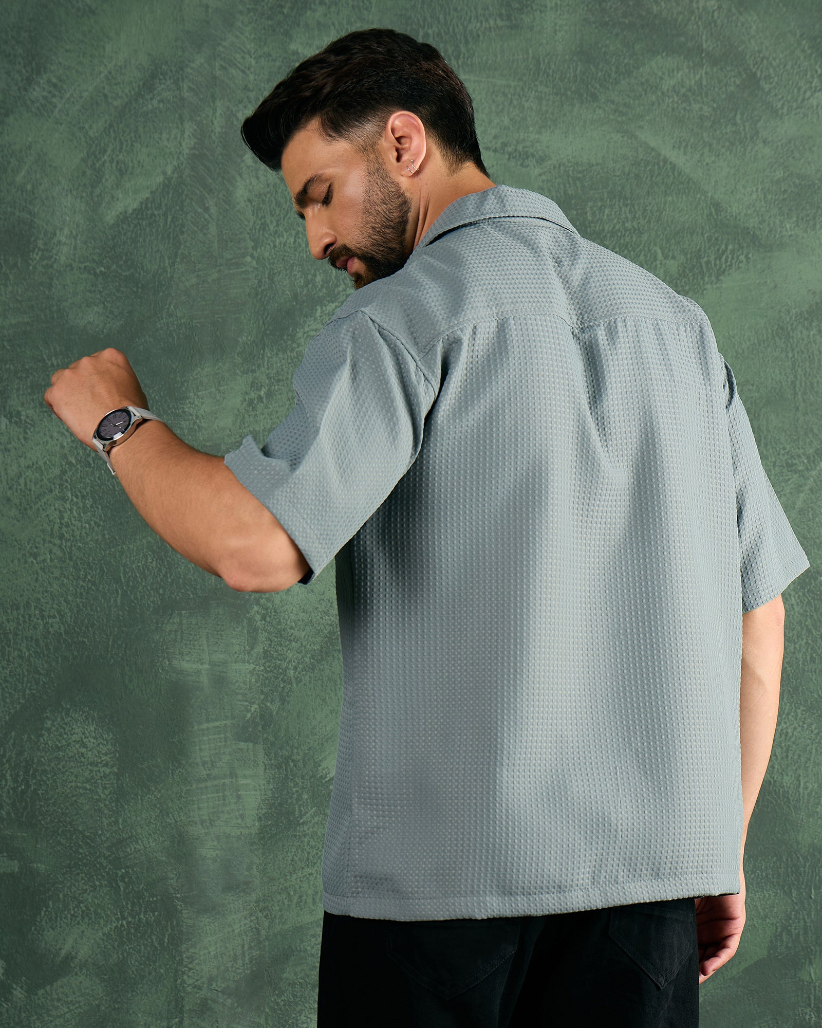Chimpaaanzee Men Dusty Green Oversized Fit Shirt