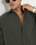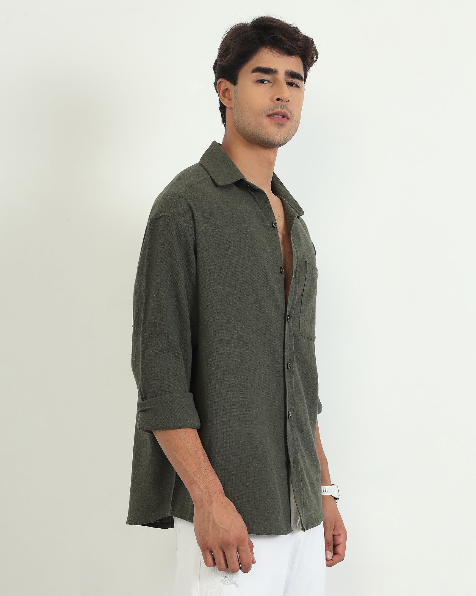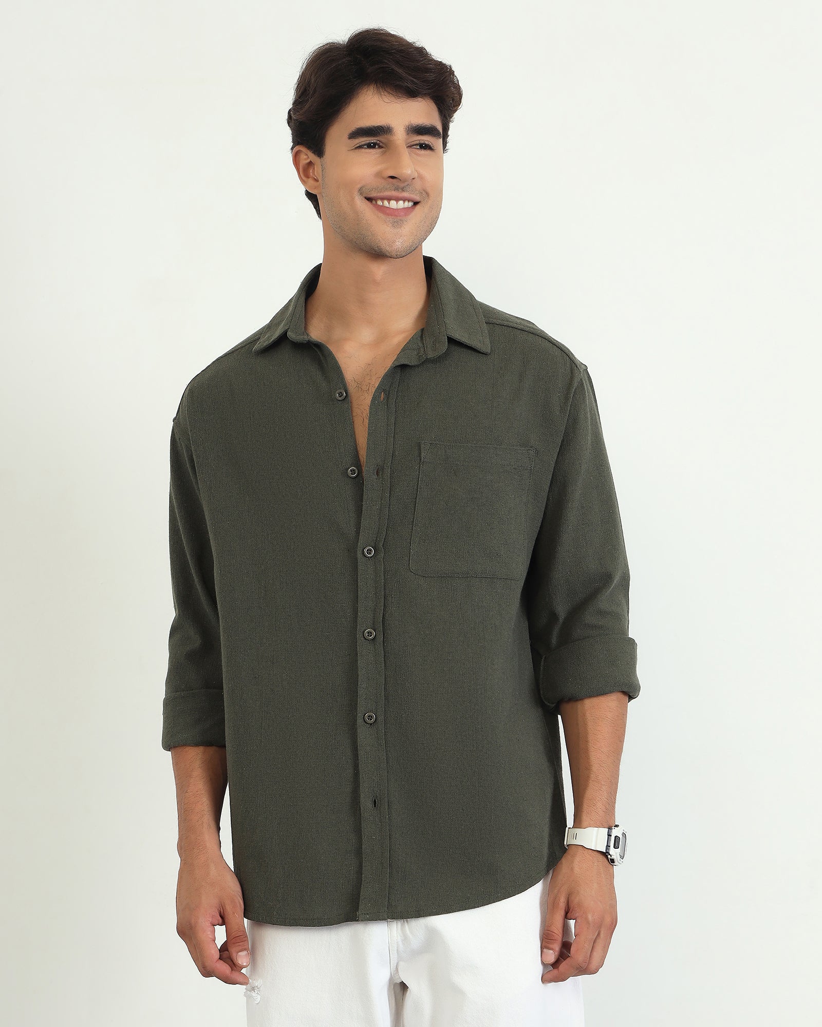 Chimpaaanzee Men Dark Green Oversized Fit Shirt