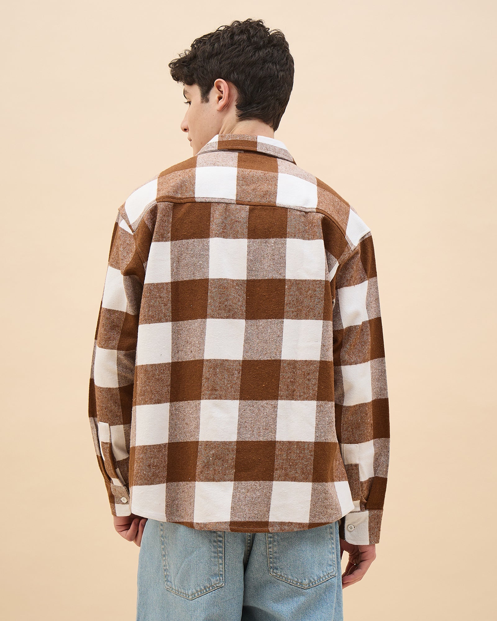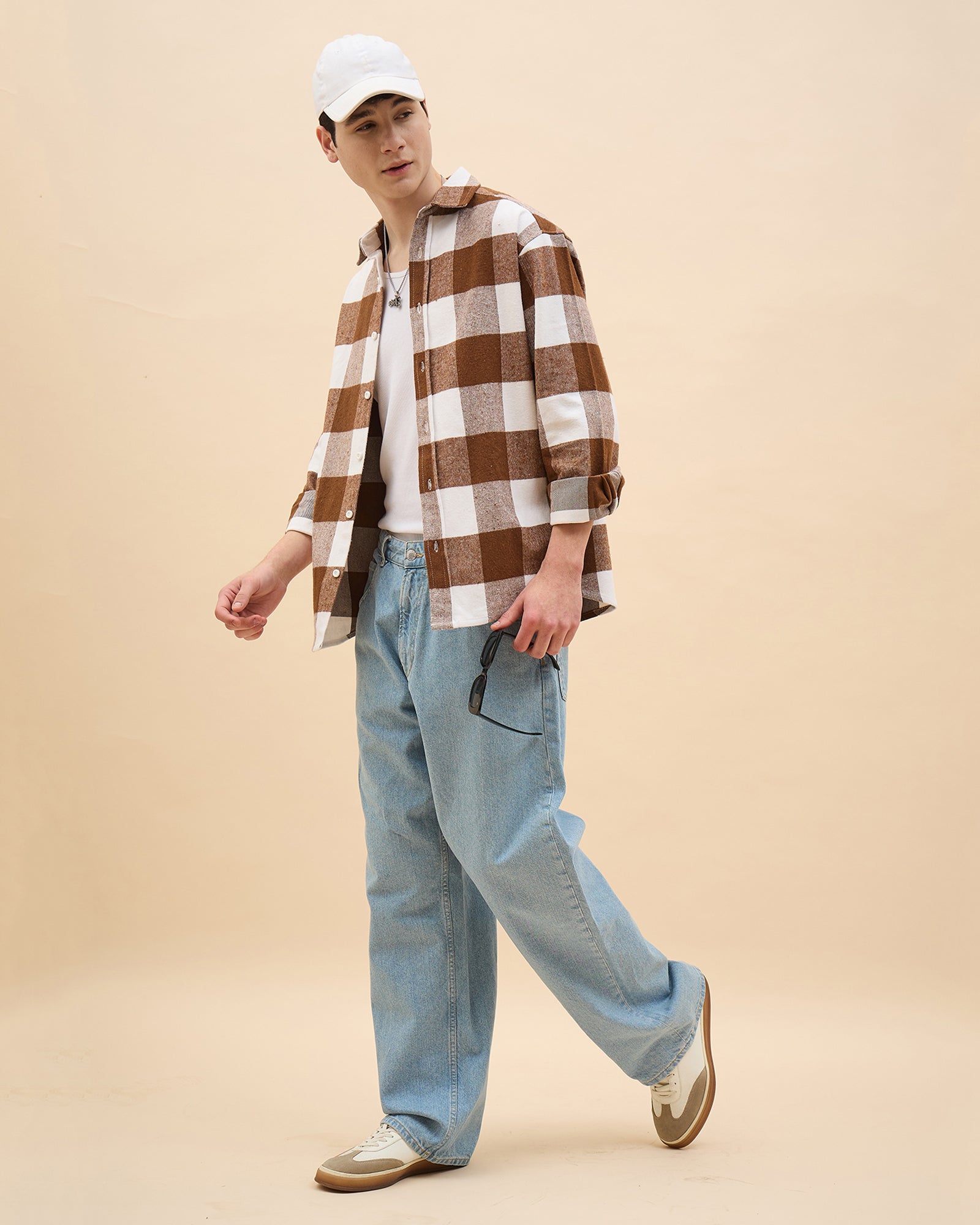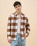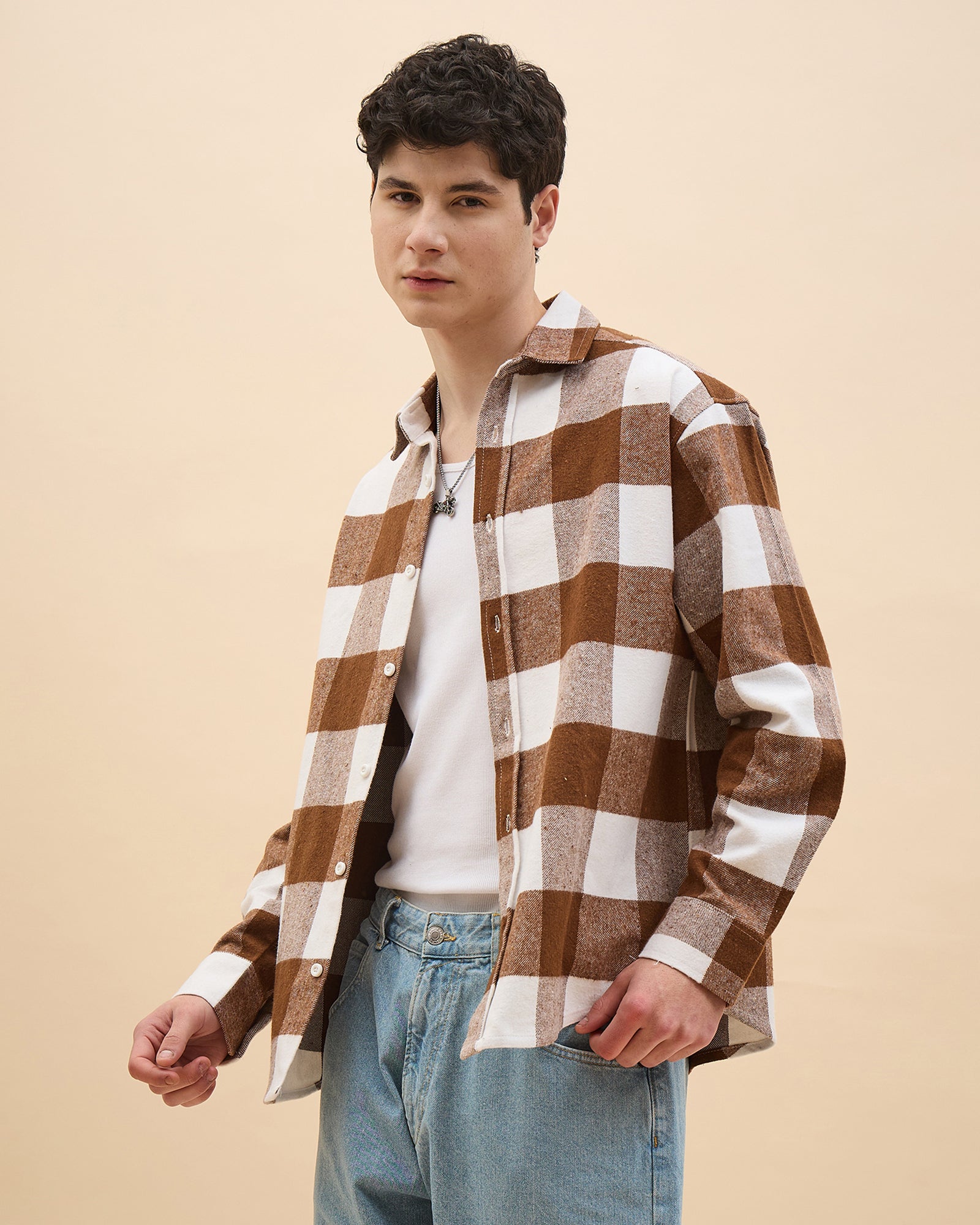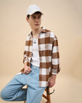 Chimpaaanzee Men Brown & White Oversized Fit Shirt