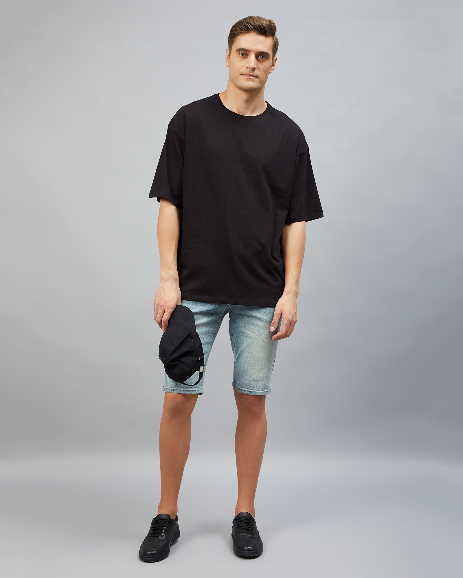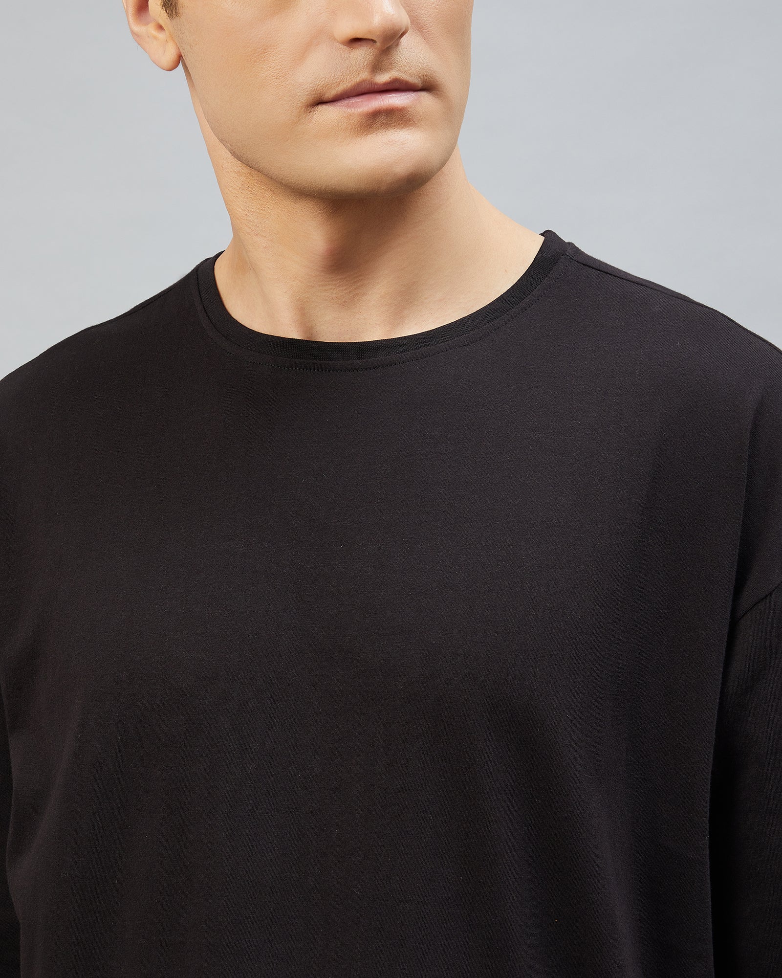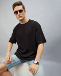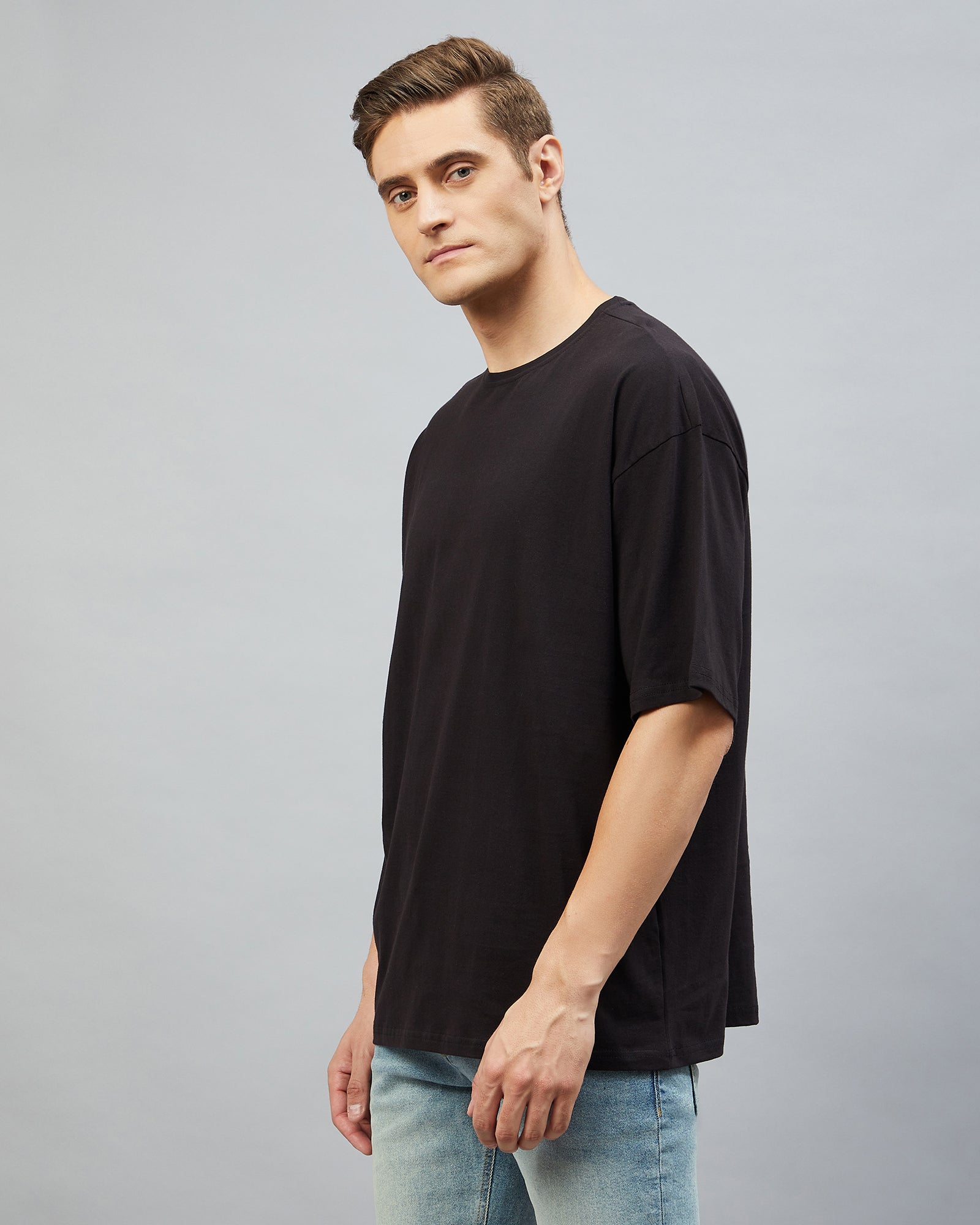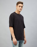 Chimpaaanzee Men Cotton Black Solid Oversize Fit T-shirt