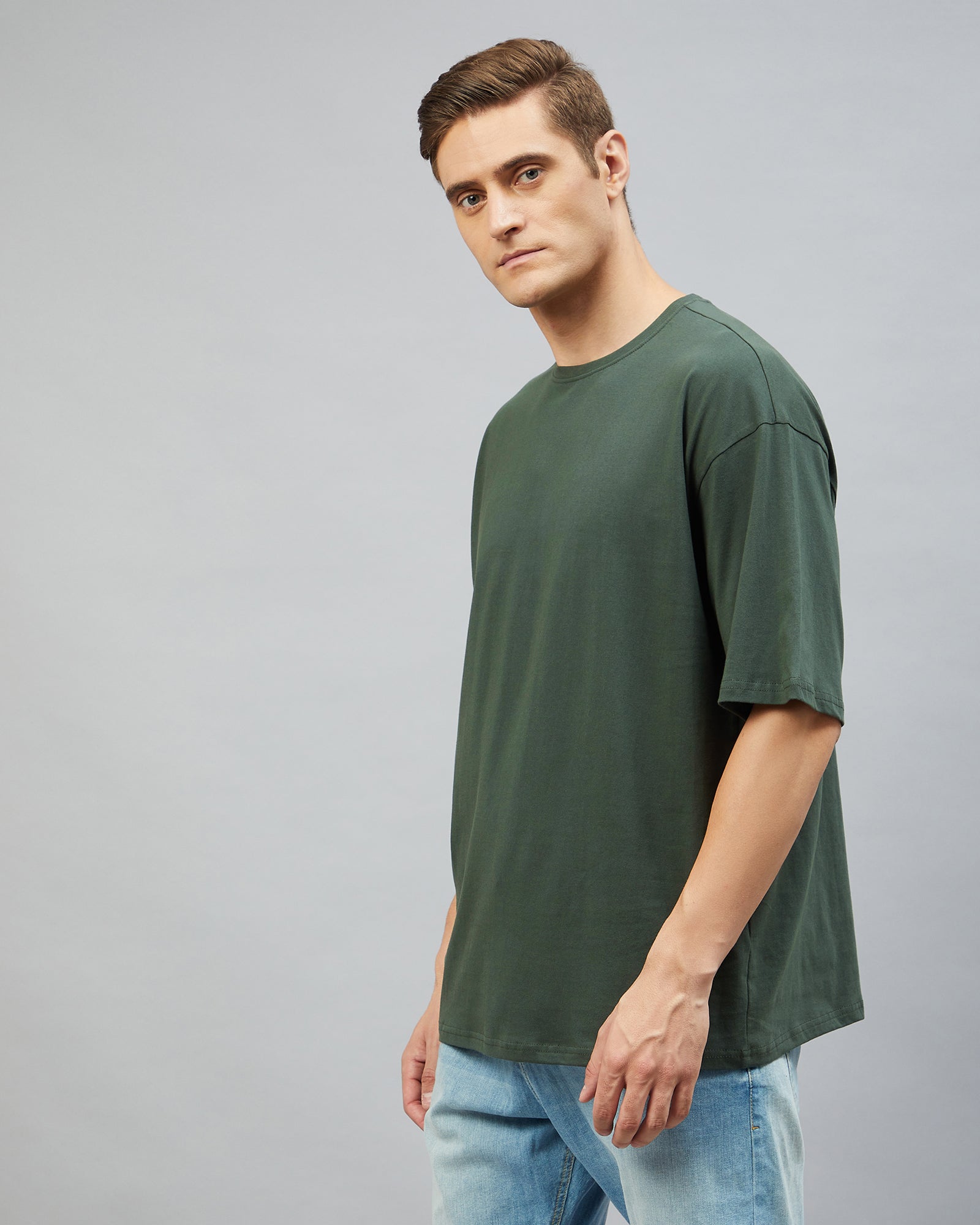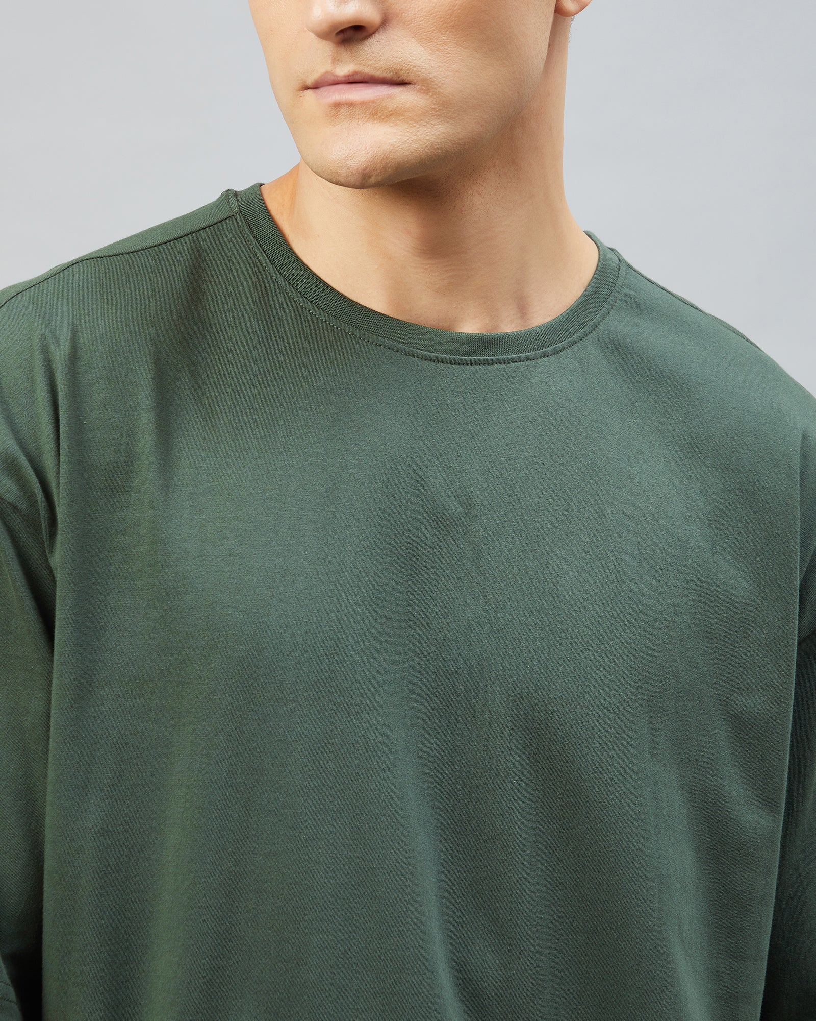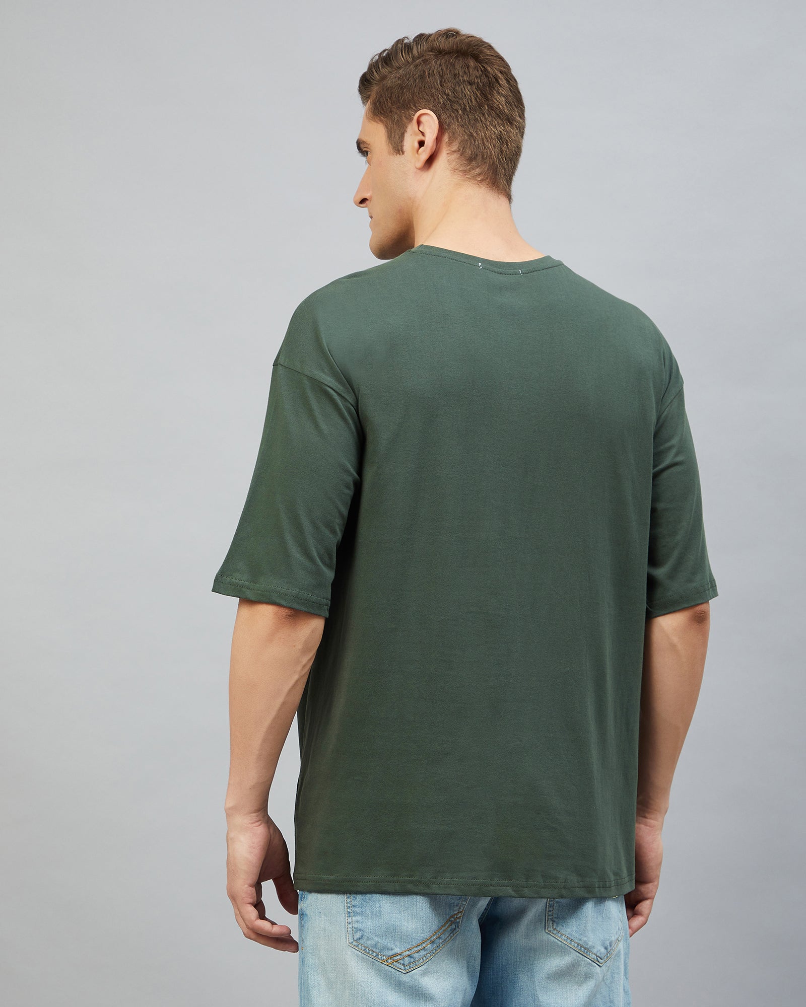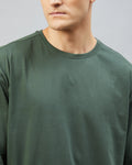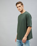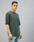 Chimpaaanzee Men Cotton Dark Green Solid Oversize Fit T-shirt