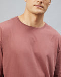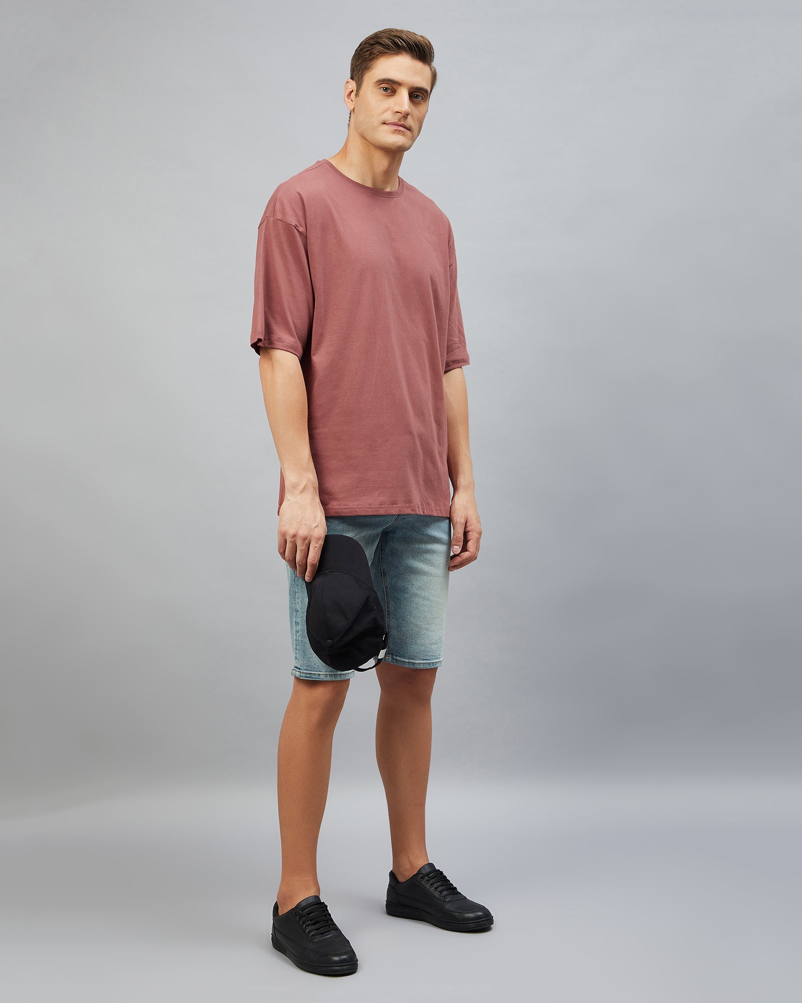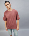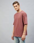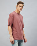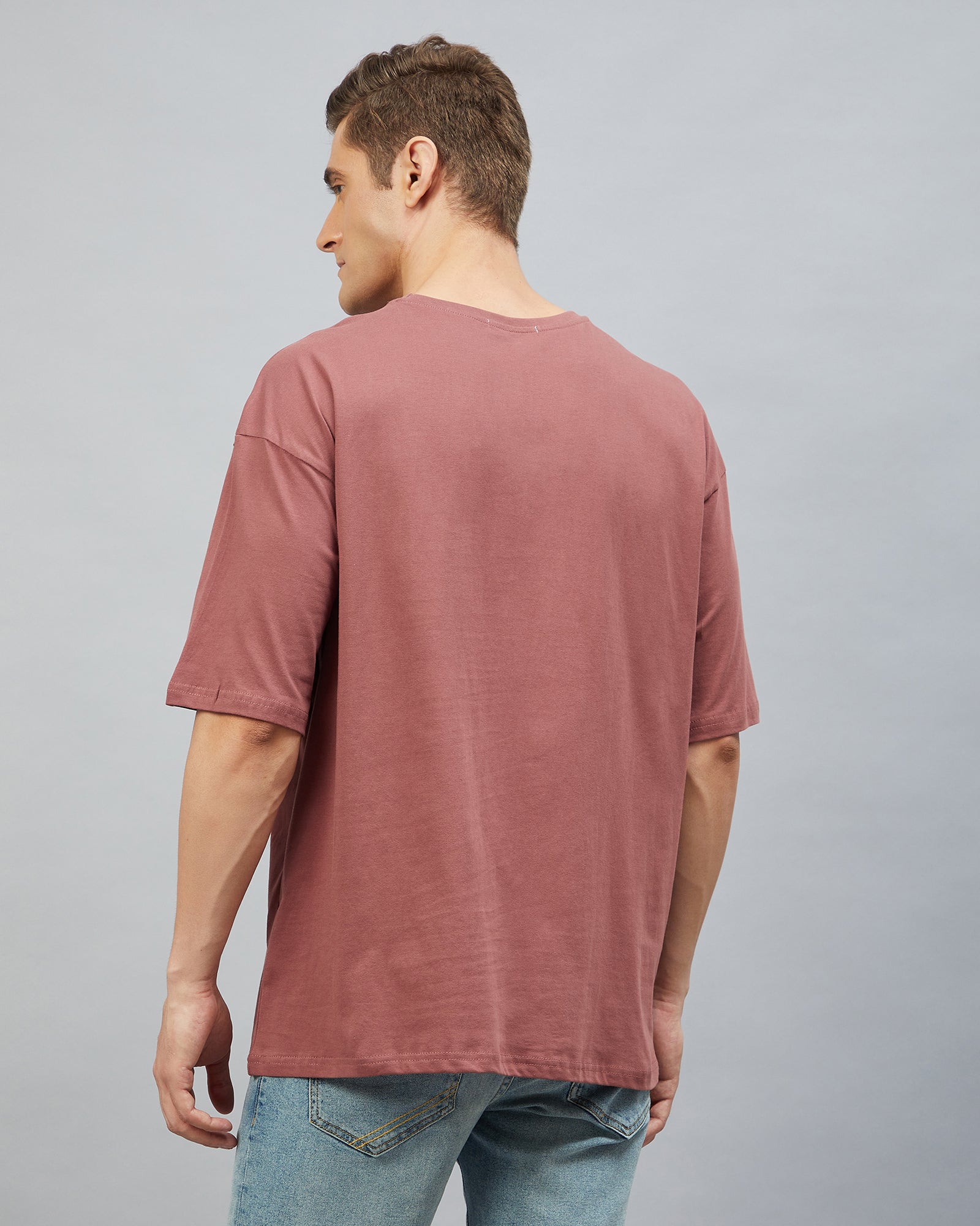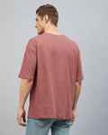 Chimpaaanzee Men Cotton Dark Pink Solid Oversize Fit T-shirt