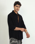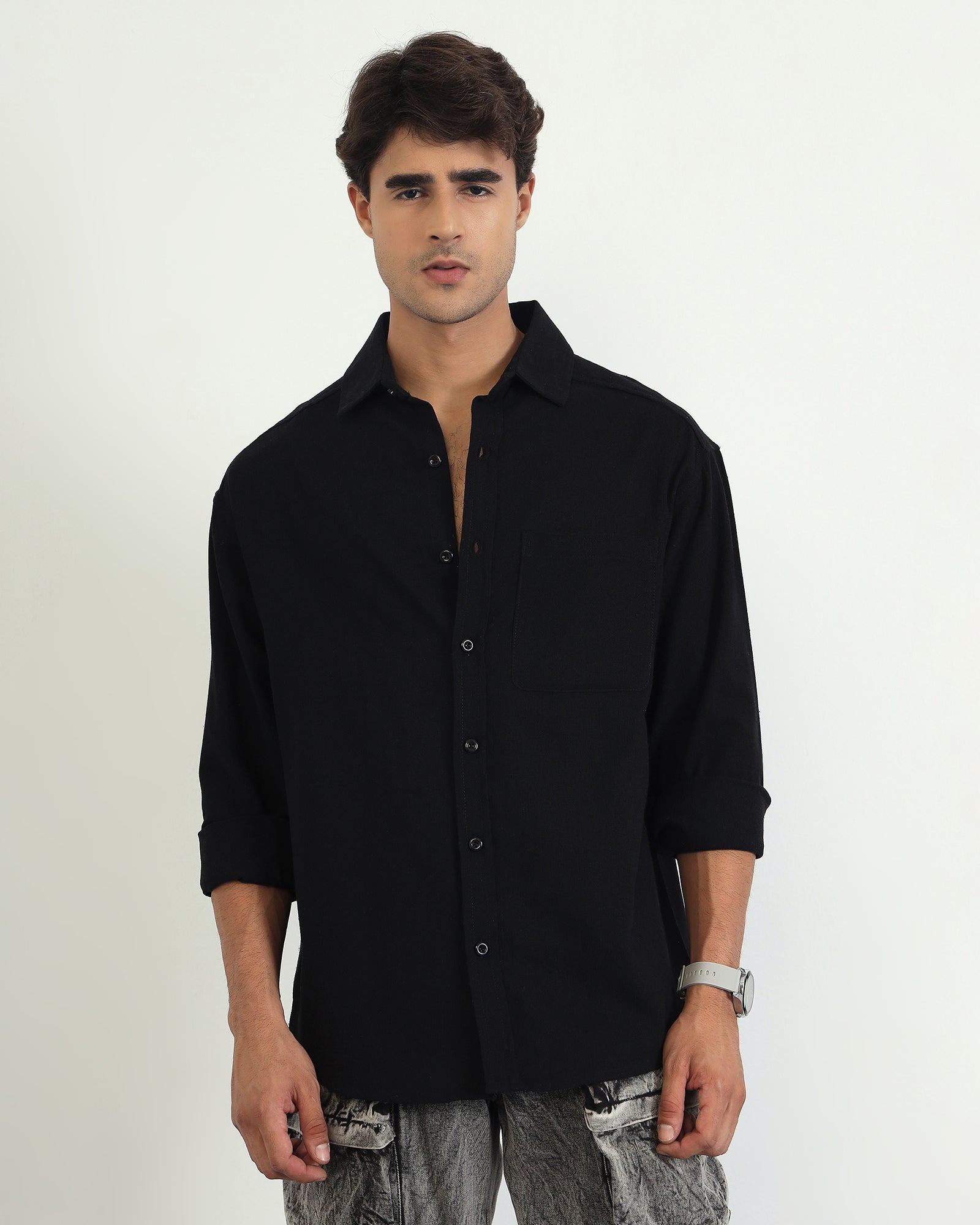 Chimpaaanzee Men Black Oversized Fit Shirt