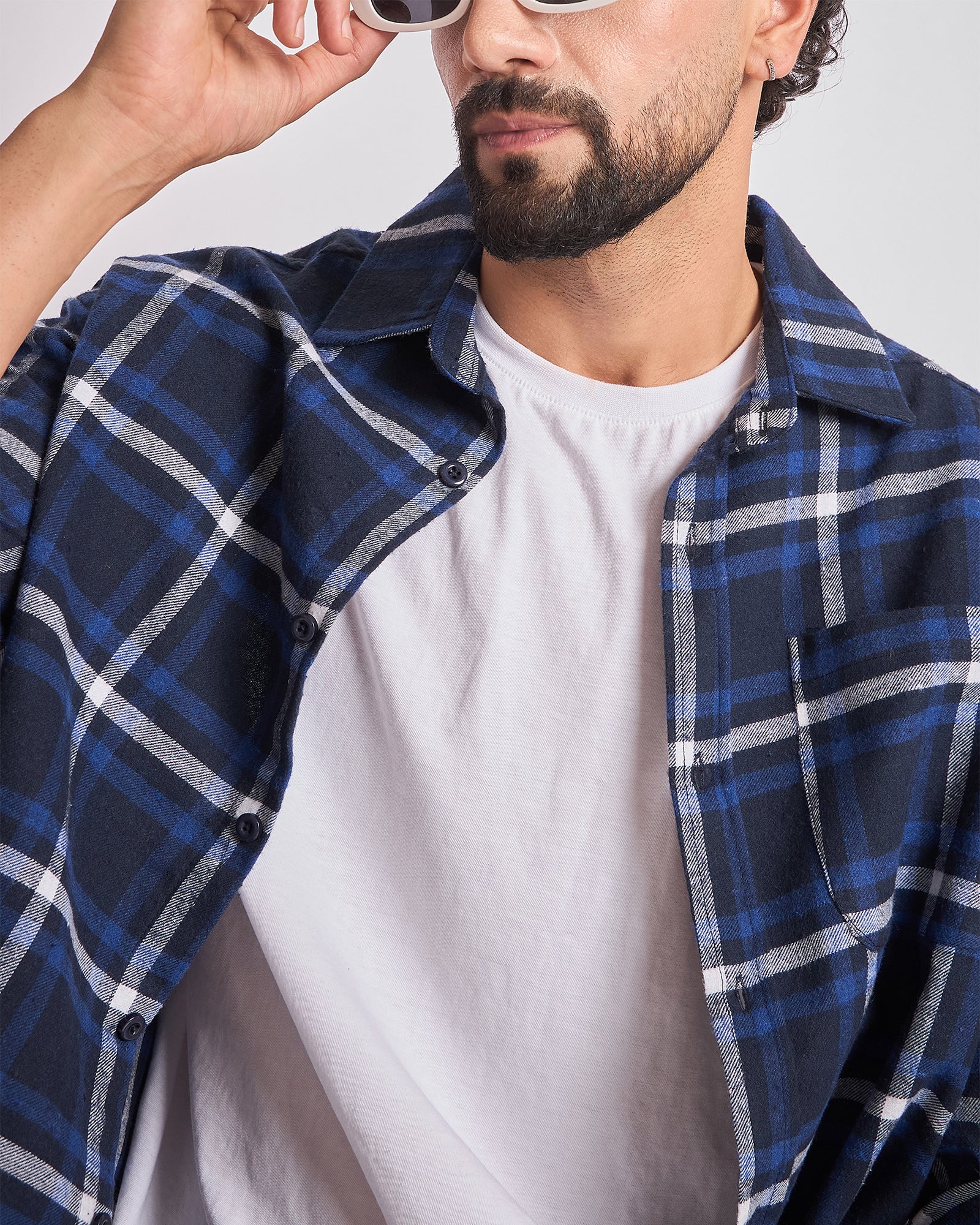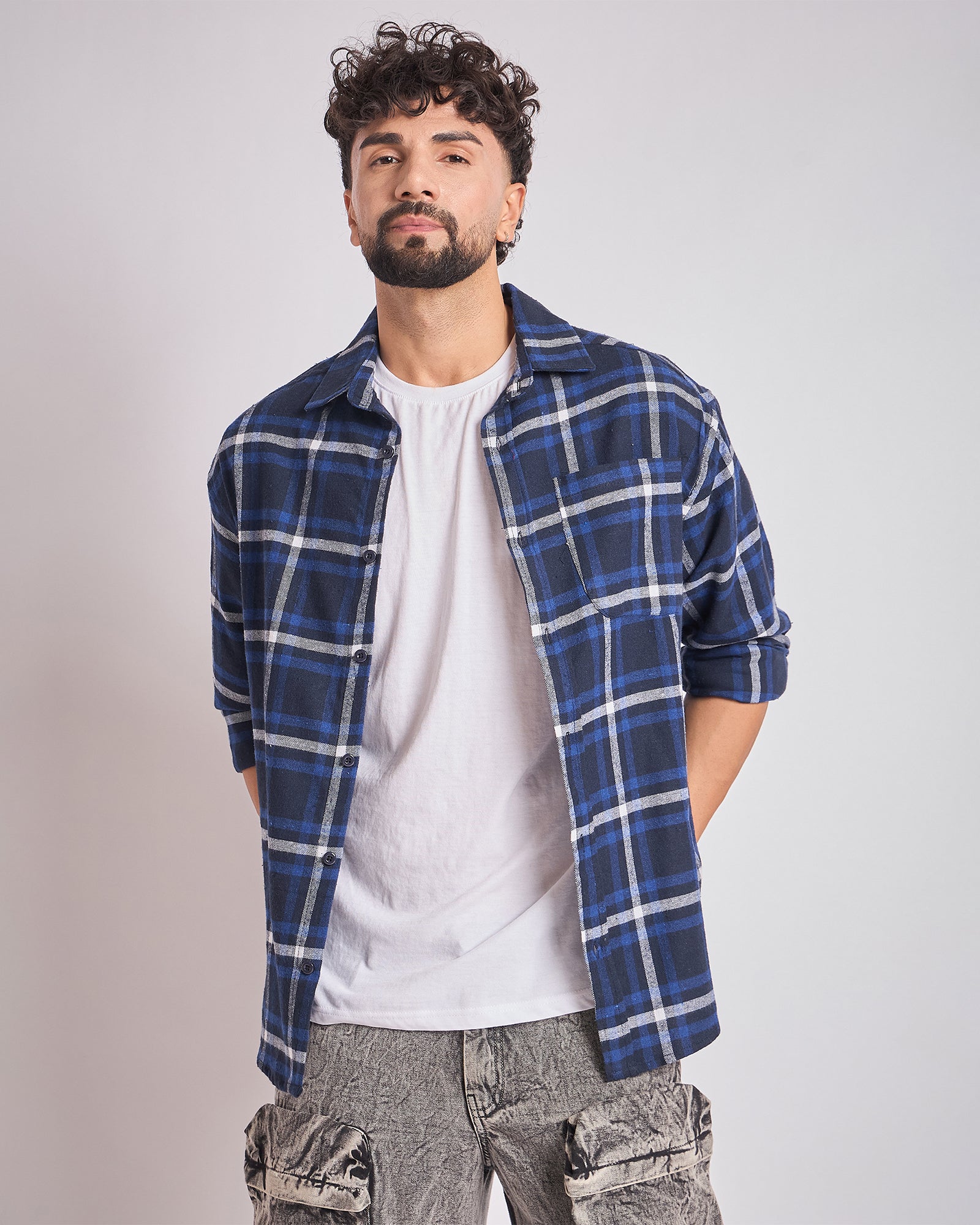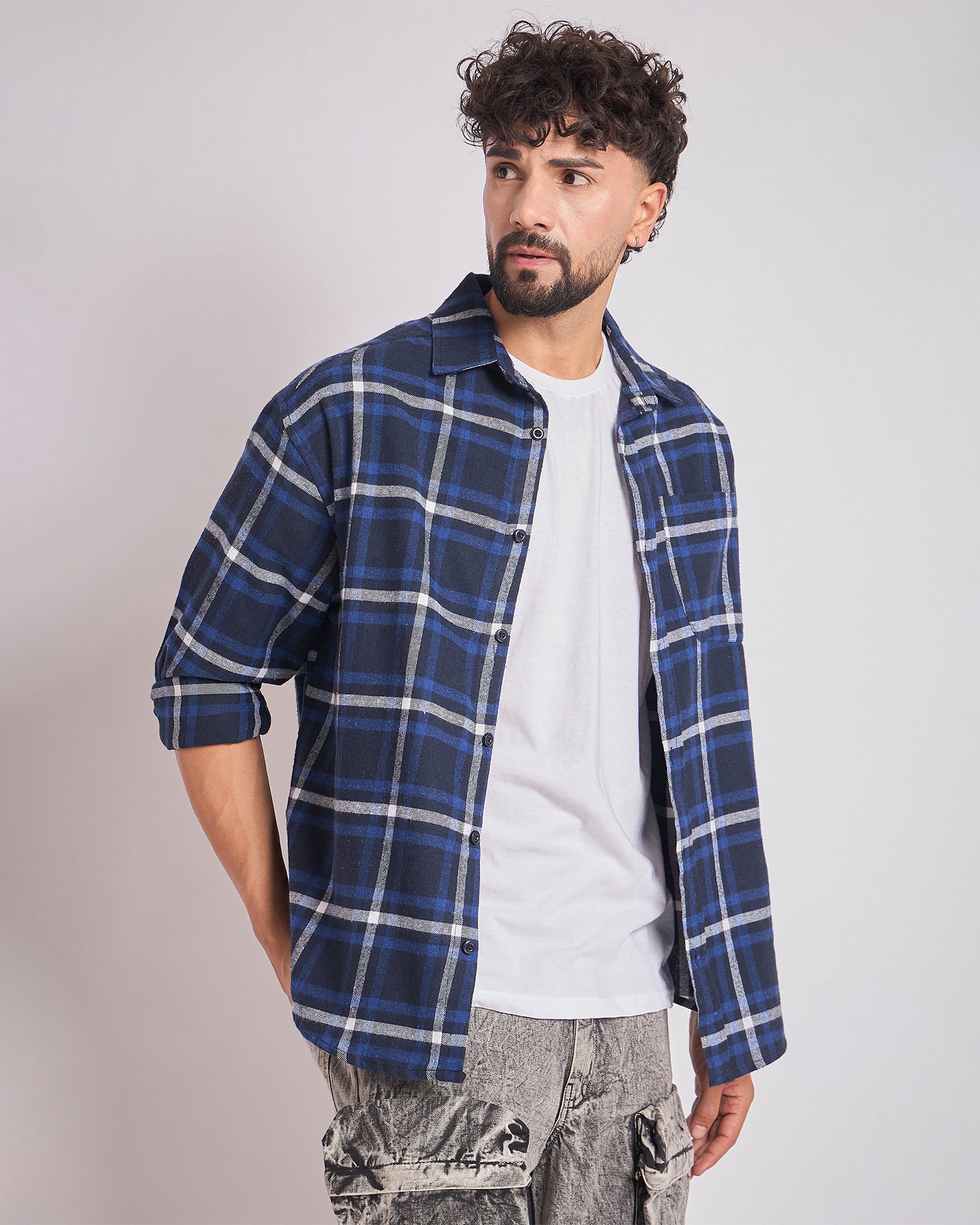 Chimpaaanzee Men Navy Oversized Fit Shirt