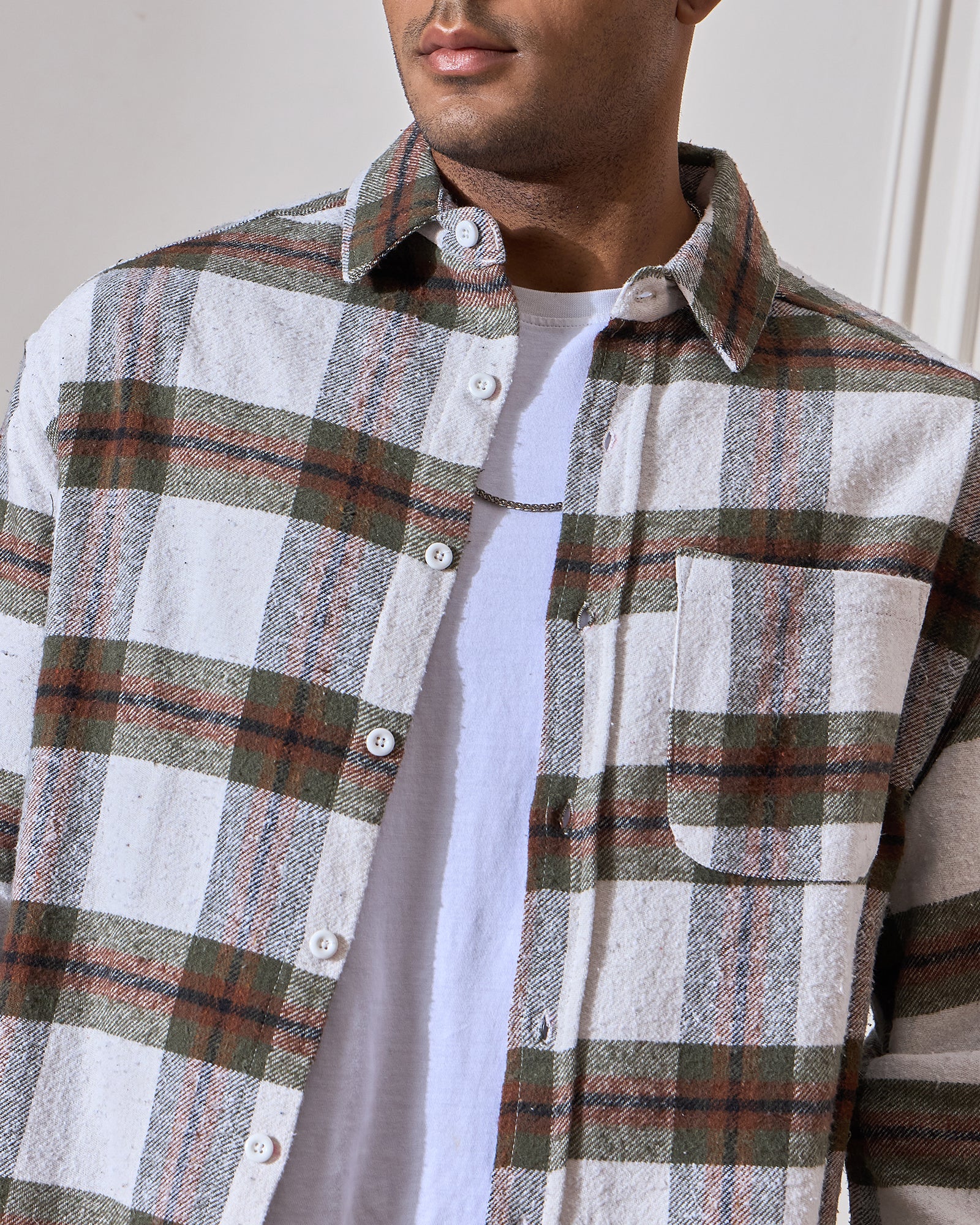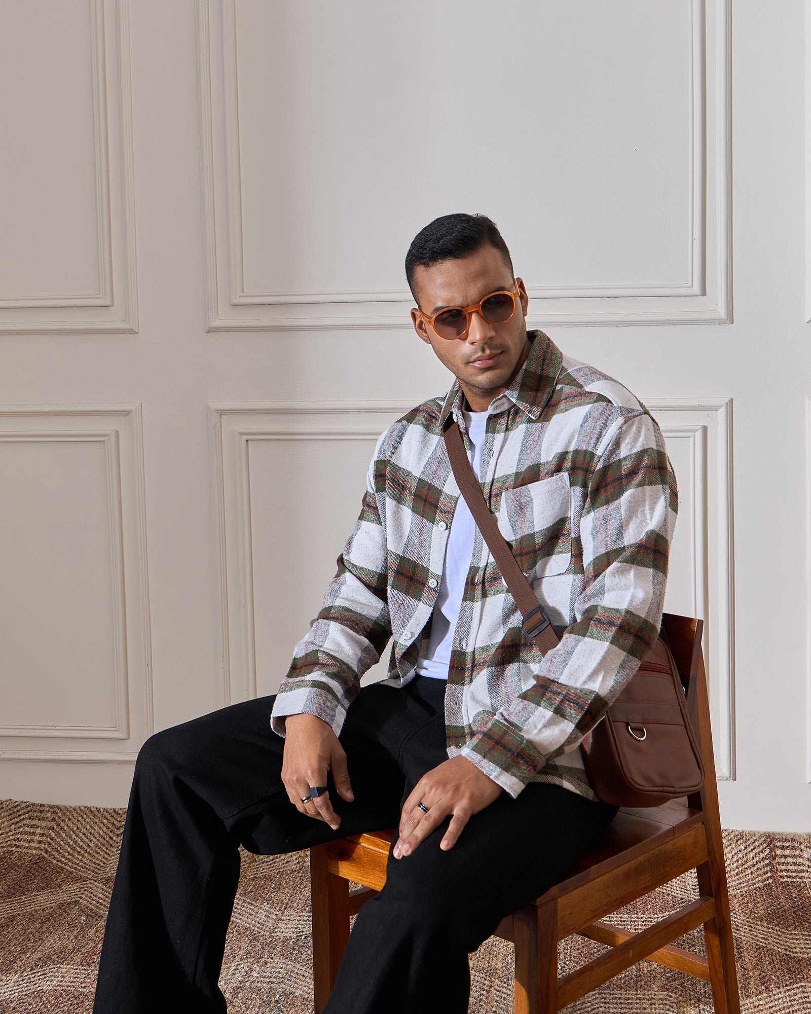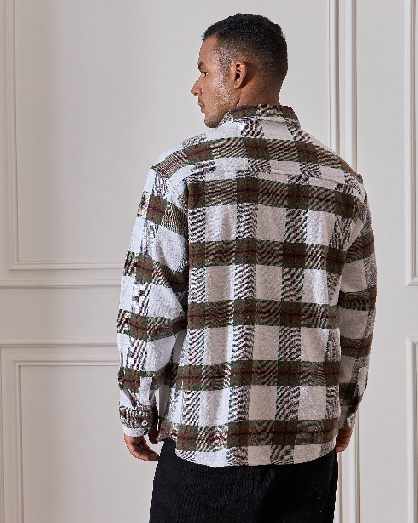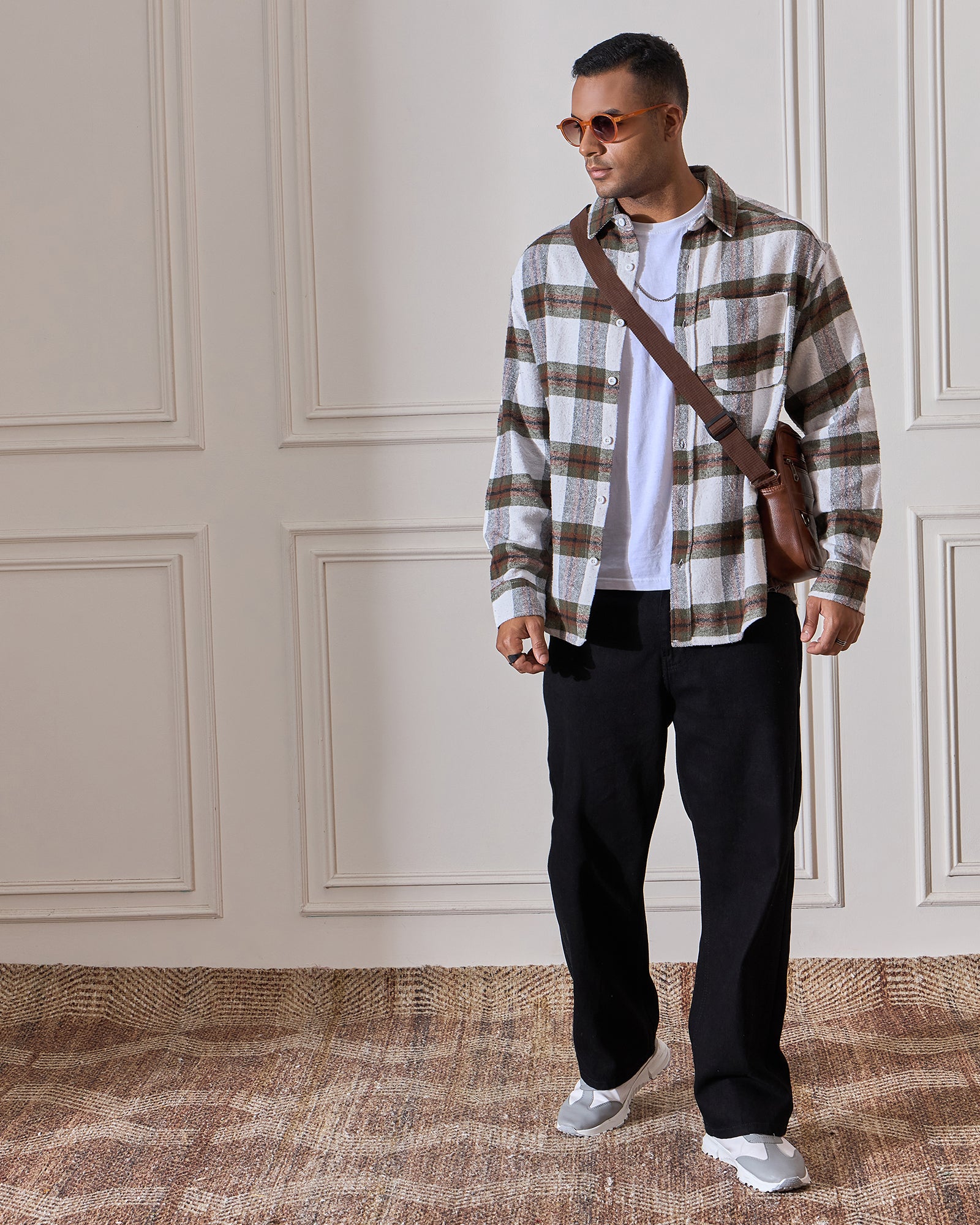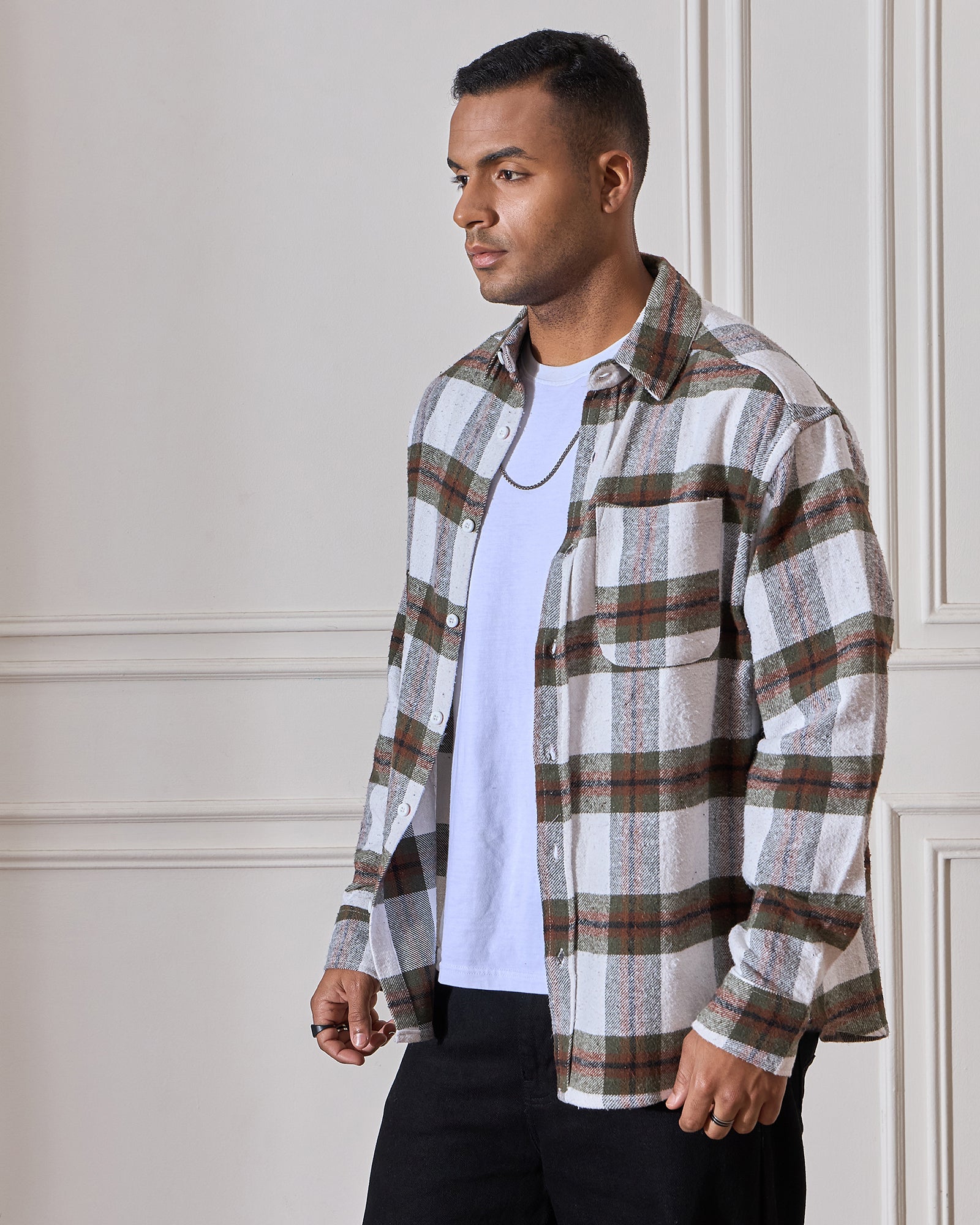 Chimpaaanzee Men Green & White Oversized Fit Shirt