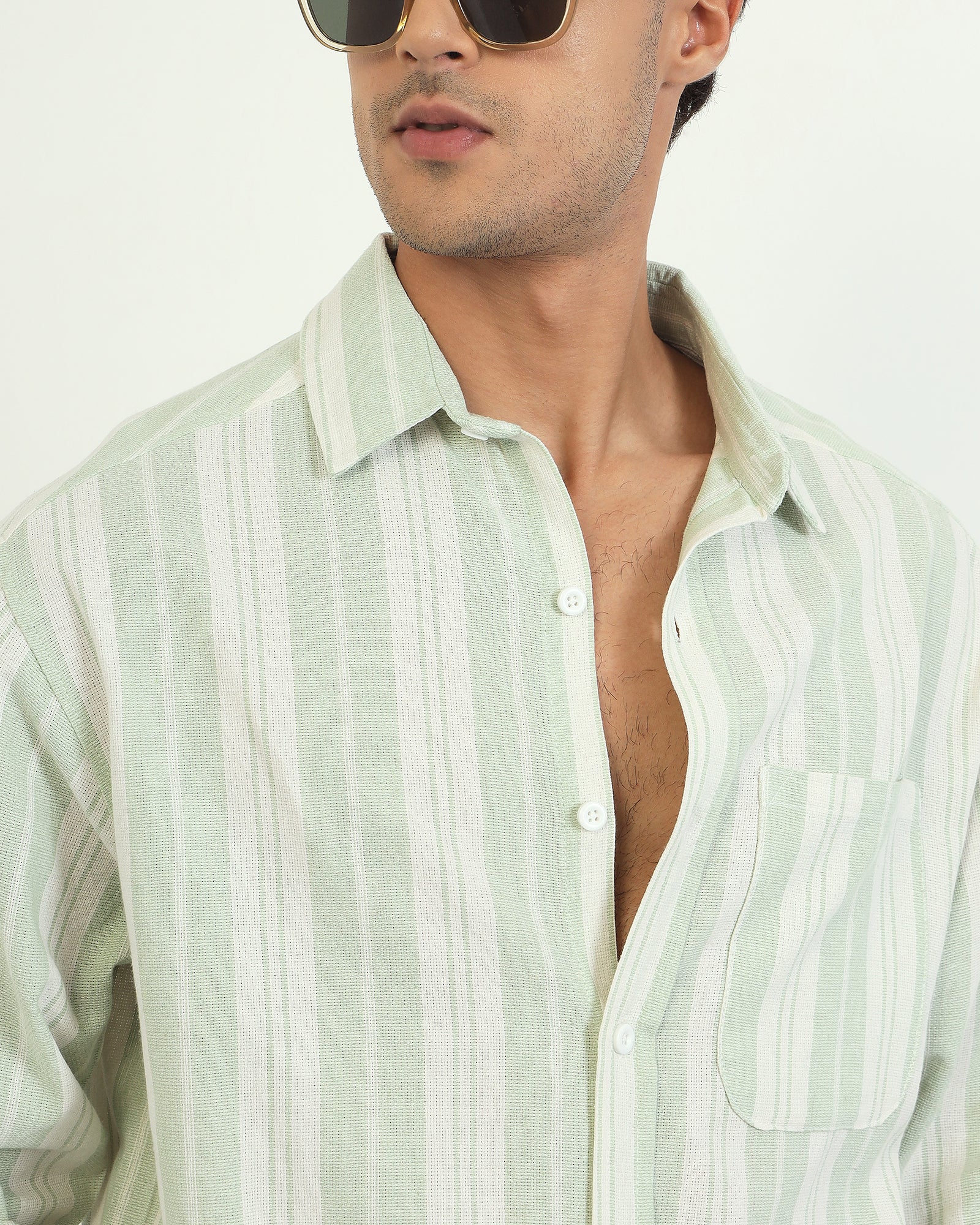 Chimpaaanzee Men Light Green Oversized Fit Shirt
