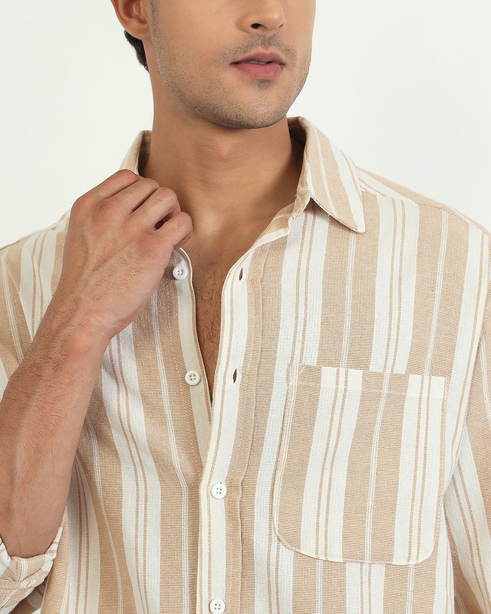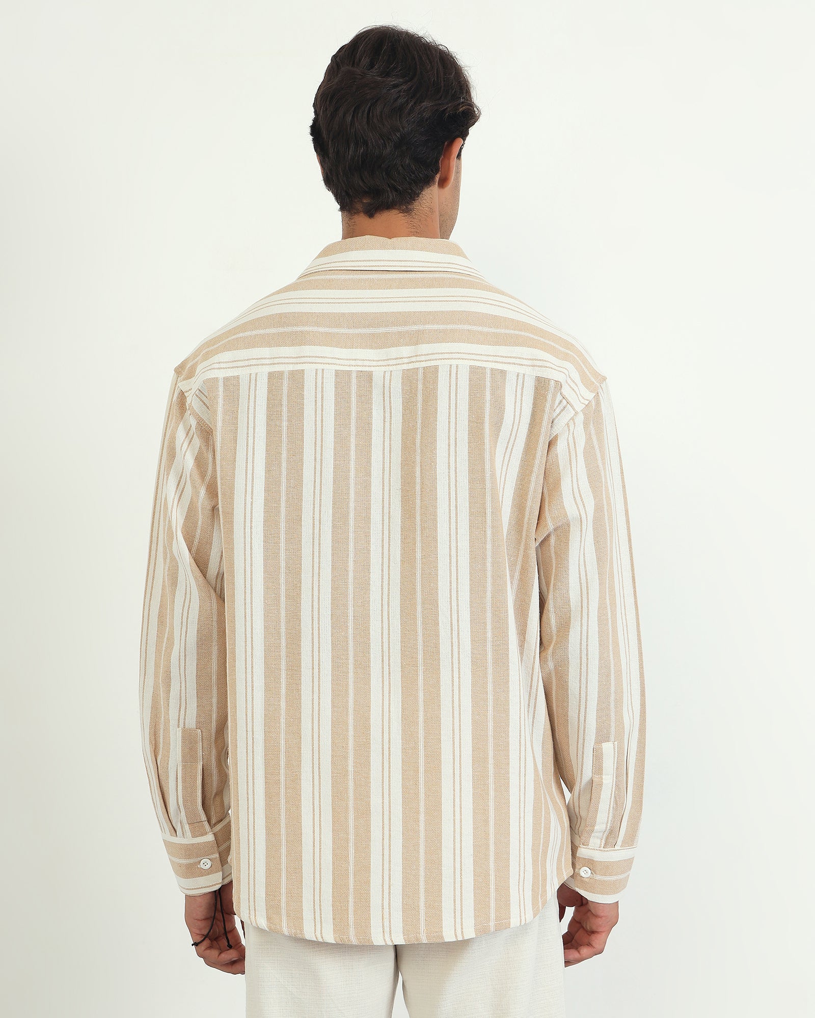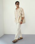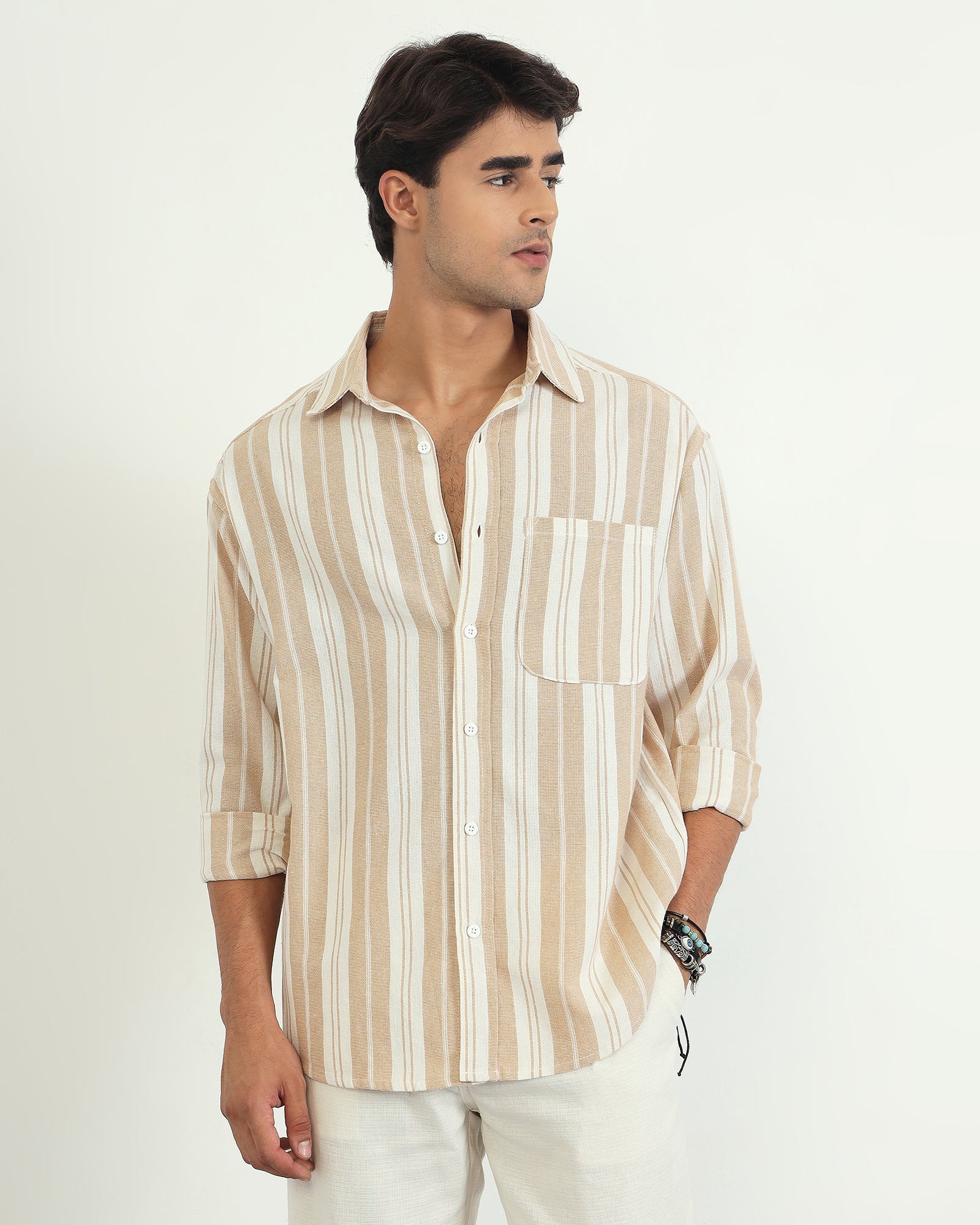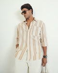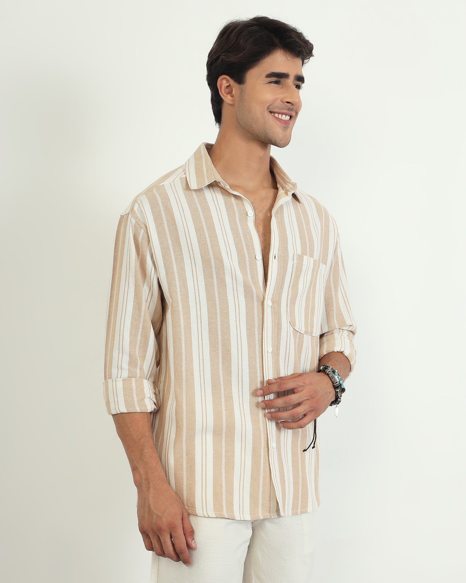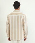 Chimpaaanzee Men Beige & White Oversized Fit Shirt