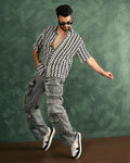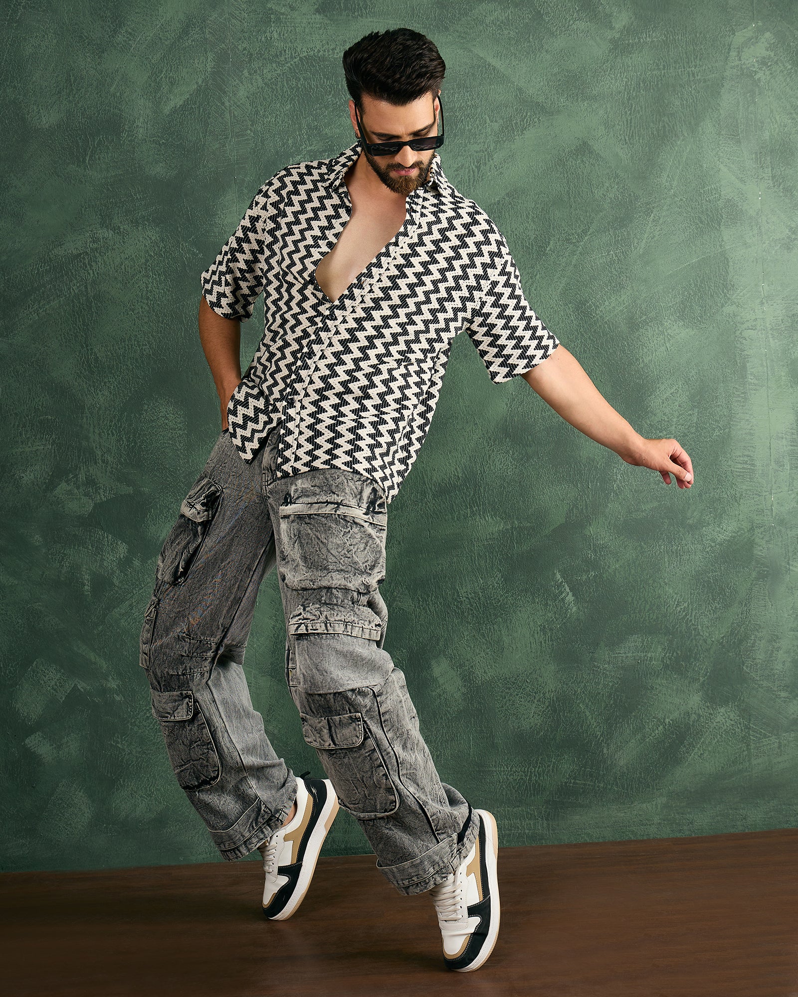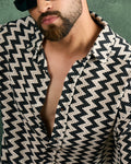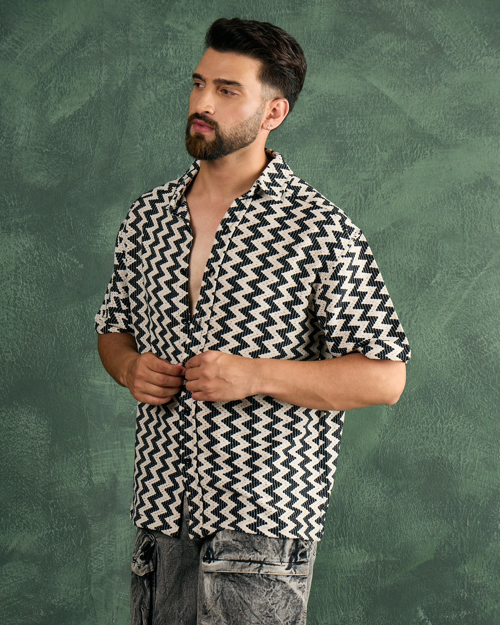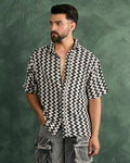 Chimpaaanzee Men Black & Off White Oversized Fit Shirt