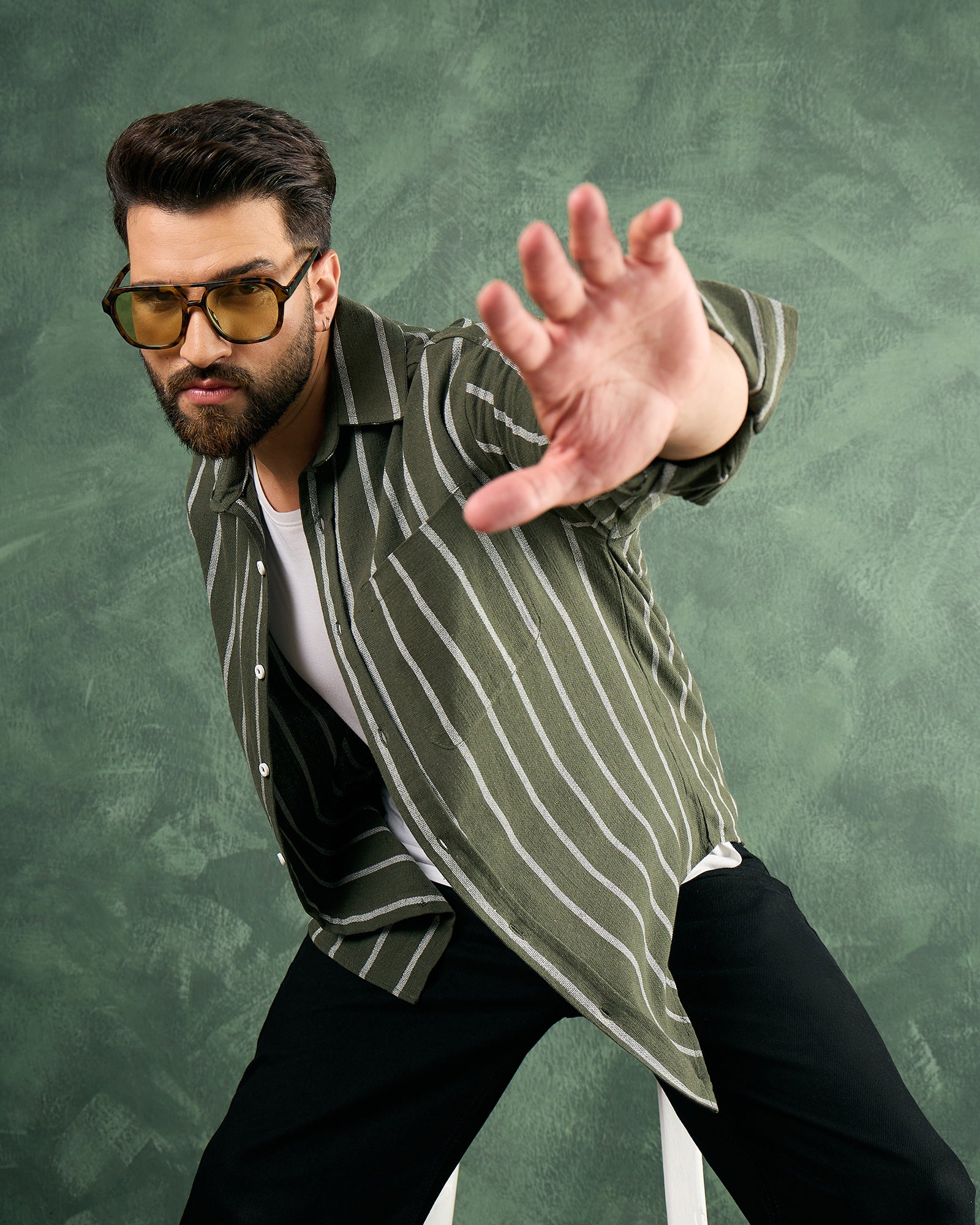 Chimpaaanzee Men Green Oversized Fit Shirt