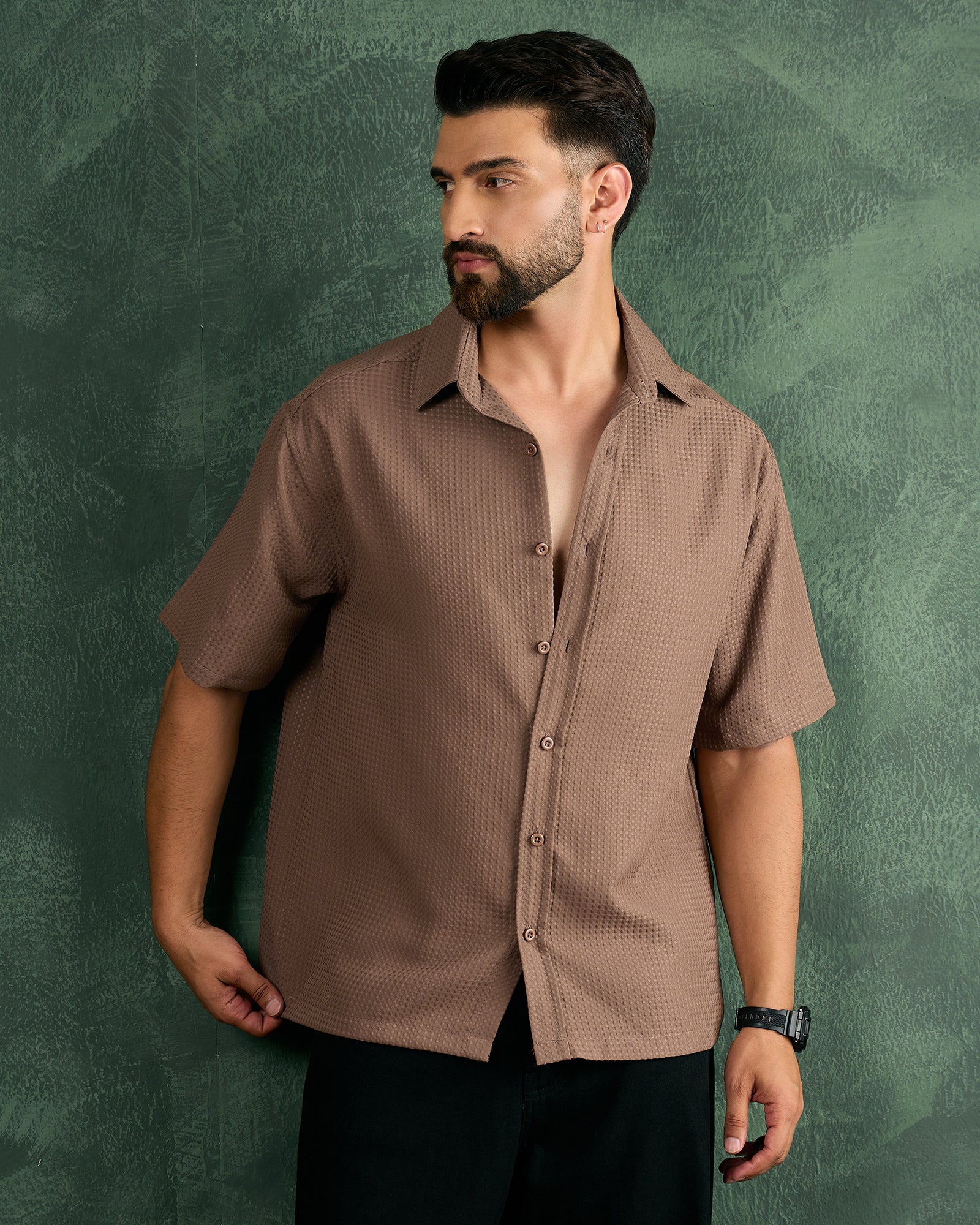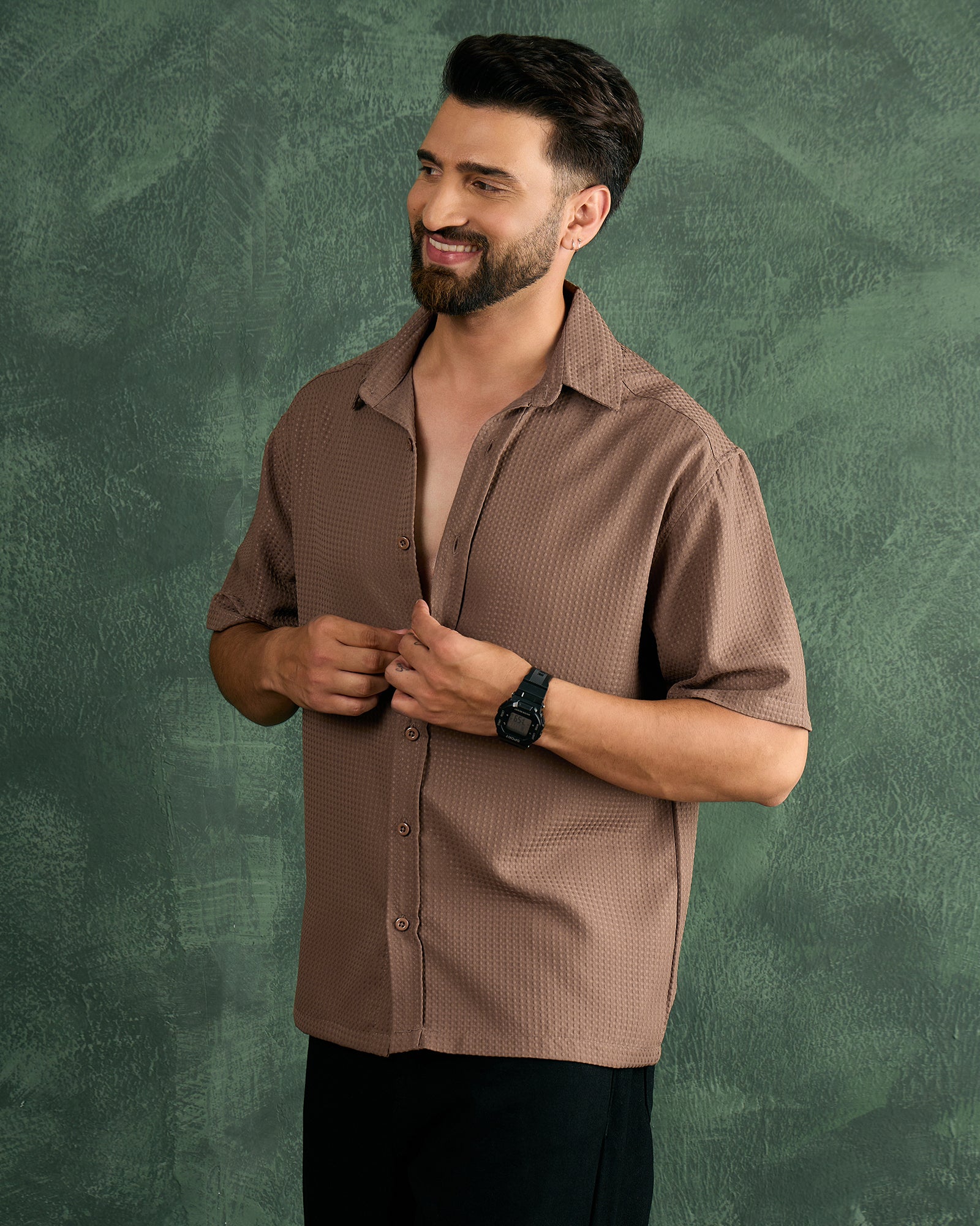 Chimpaaanzee Men Brown Oversized Fit Shirt
