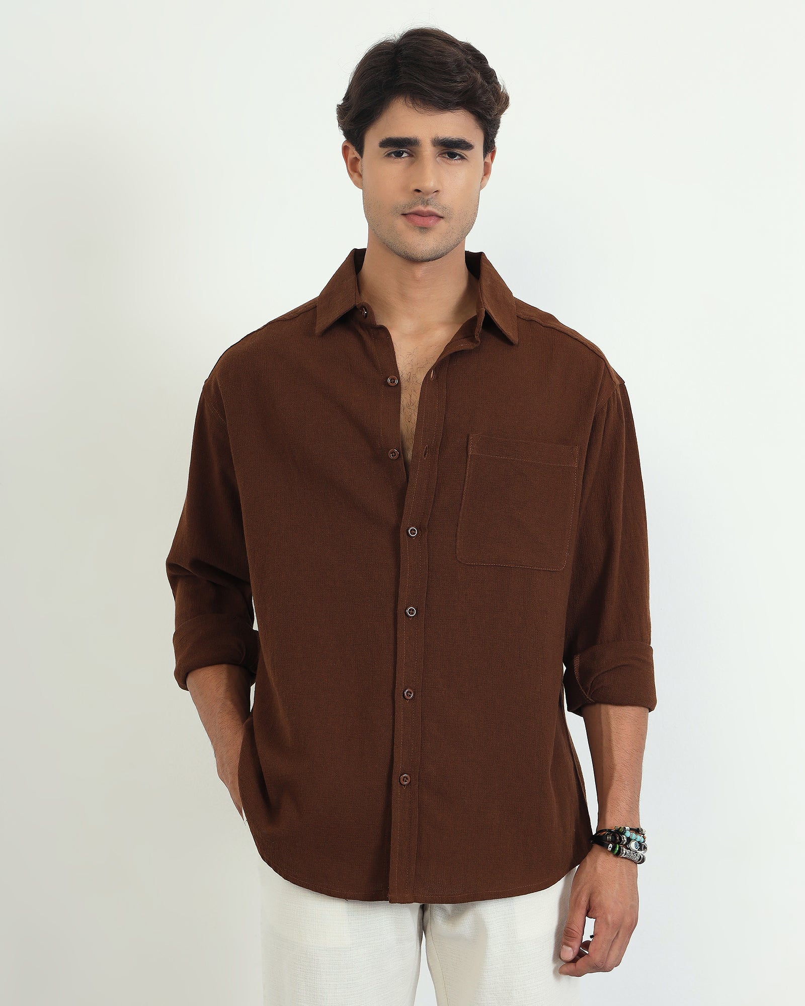 Chimpaaanzee Men Brown Oversized Fit Shirt