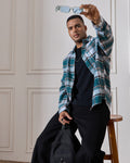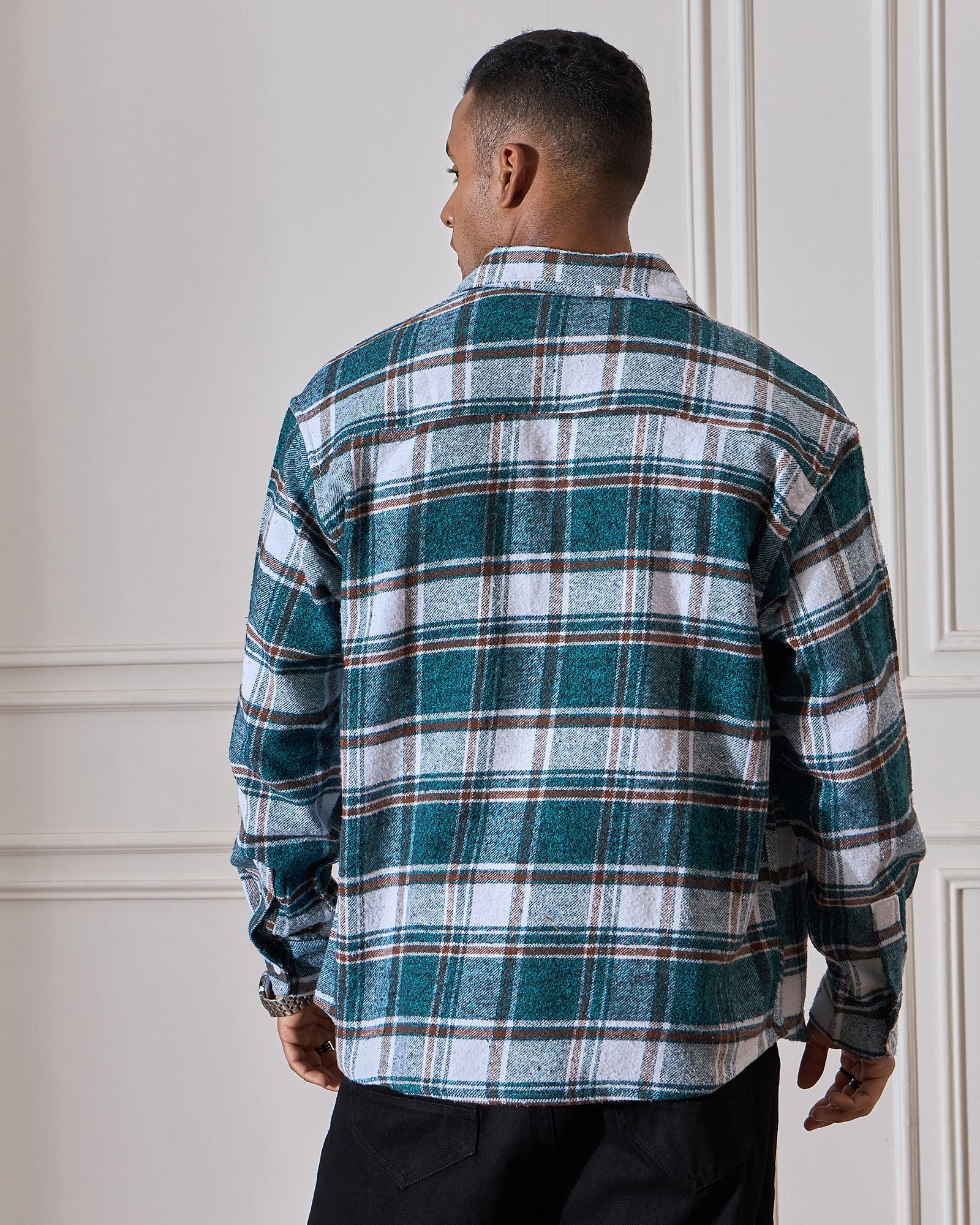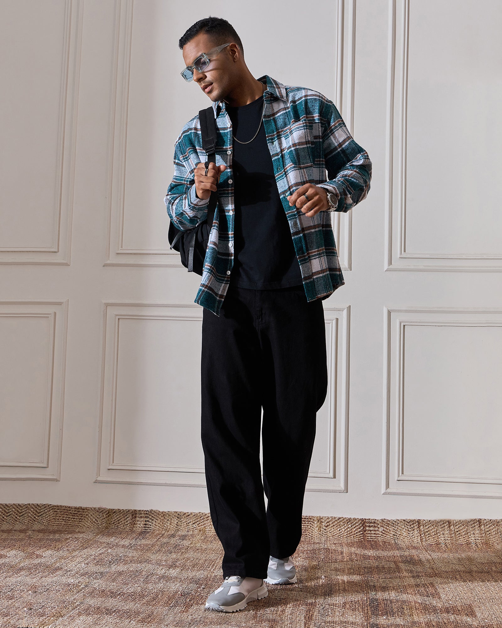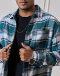 Chimpaaanzee Men Skyblue & White Oversized Fit Shirt