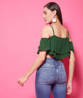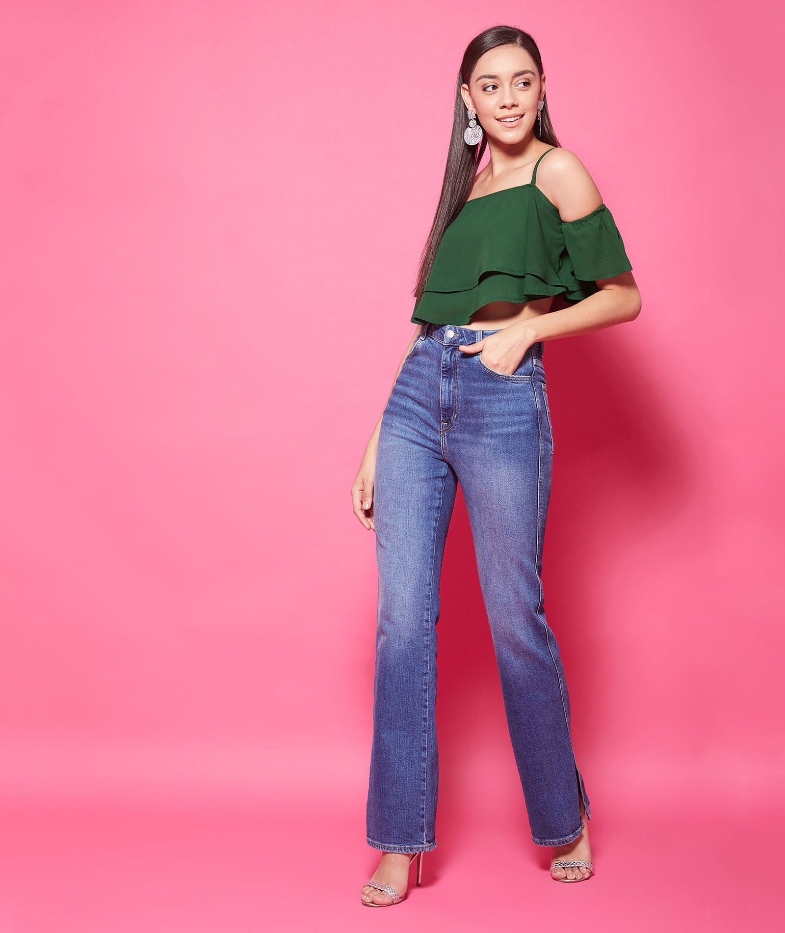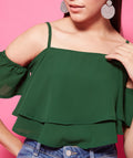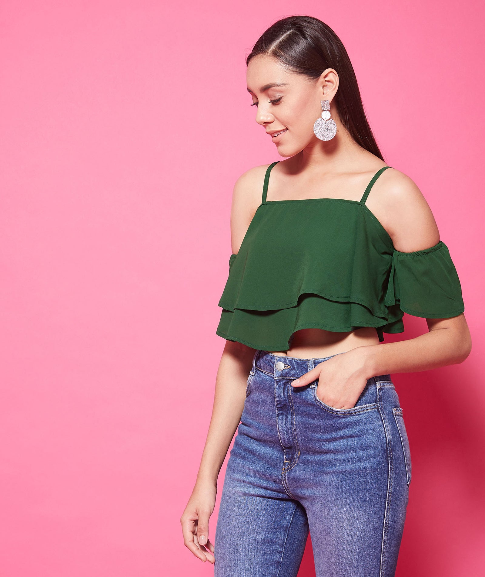 This model has a height of 5 feet 7 inches and is wearing a Top of Size "S"
