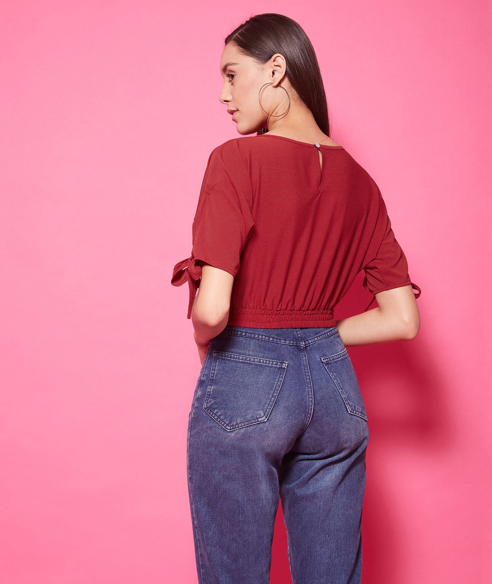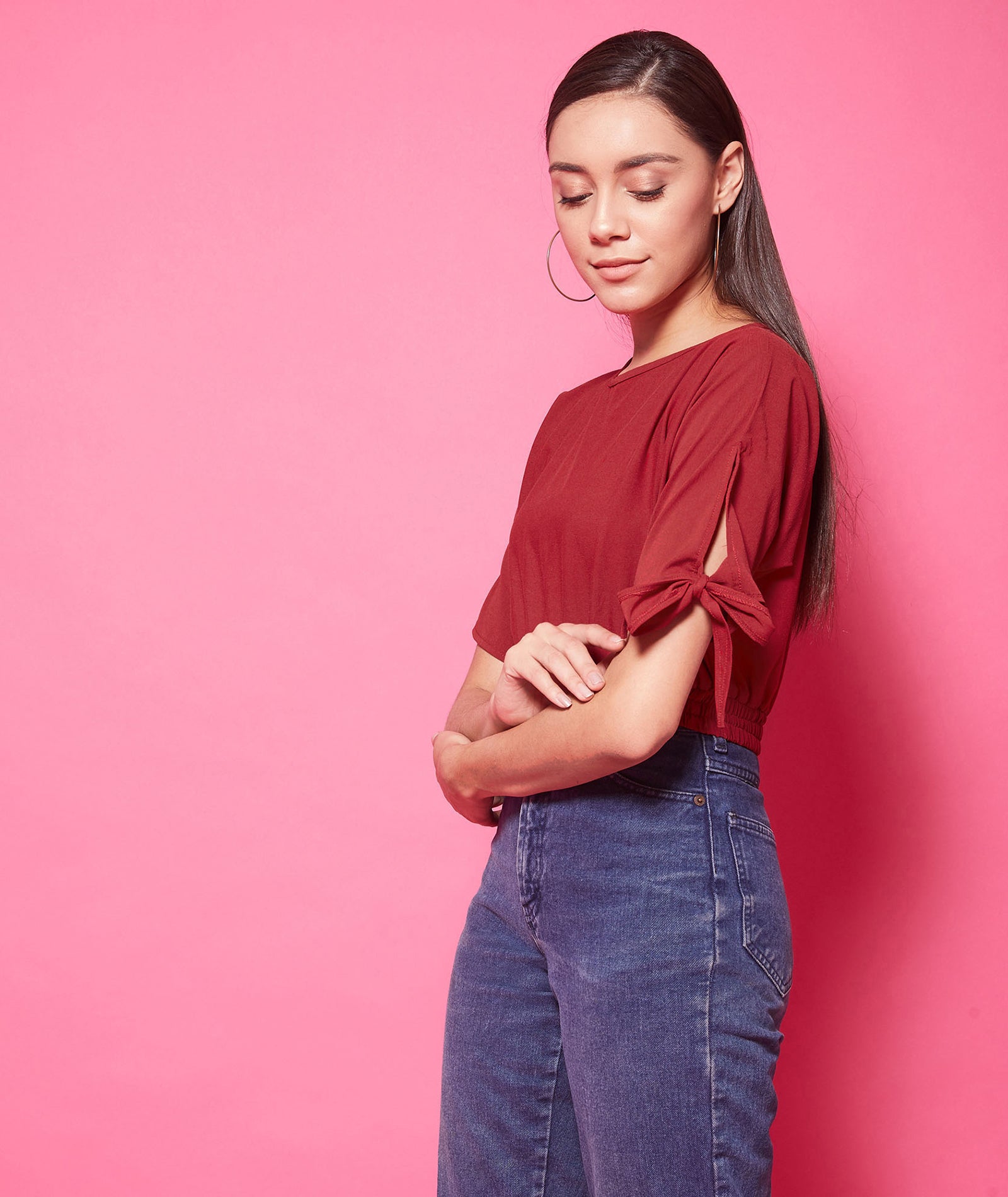 Chimpaaanzee Polyester Crop Tops - Maroon