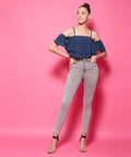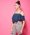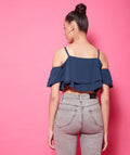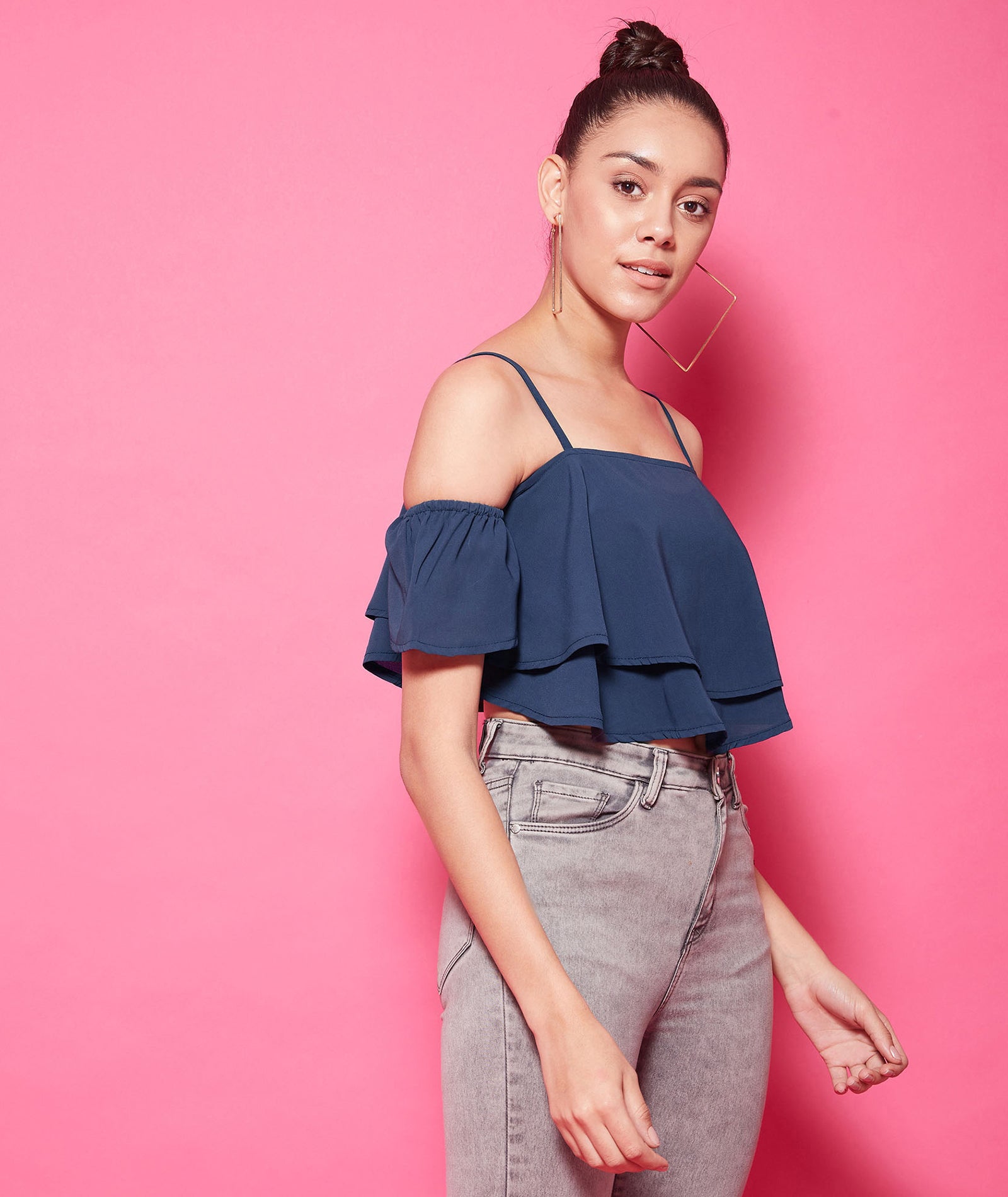This model has a height of 5 feet 7 inches and is wearing a Top of Size "S"