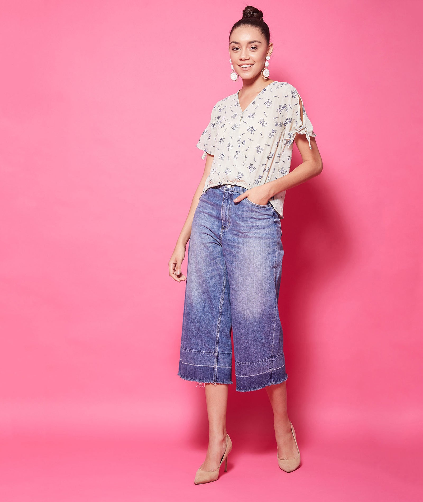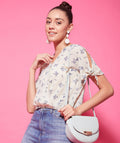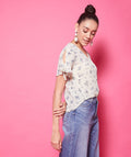 This model has a height of 5 feet 7 inches and is wearing a Top of Size "S"