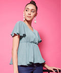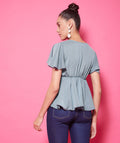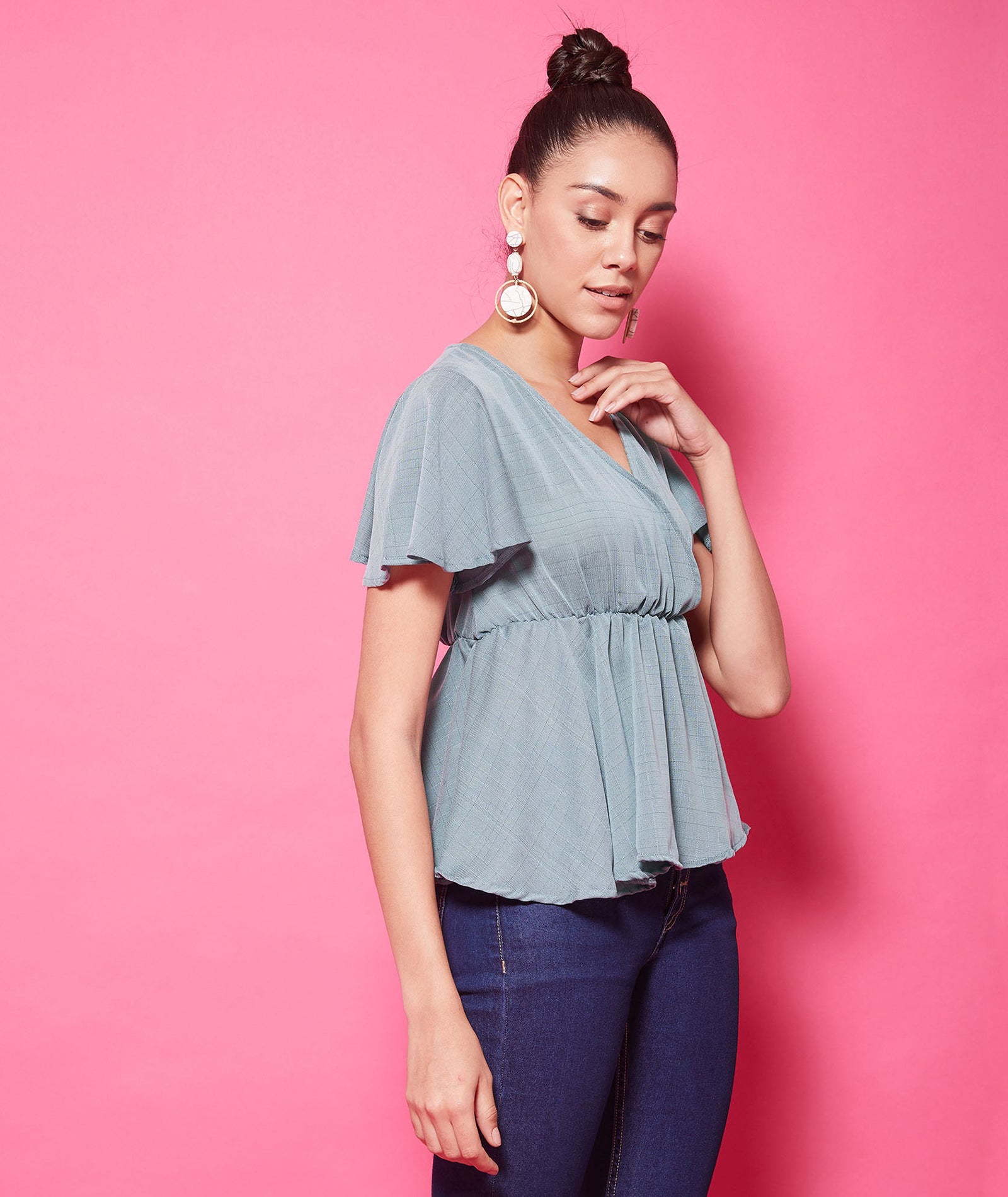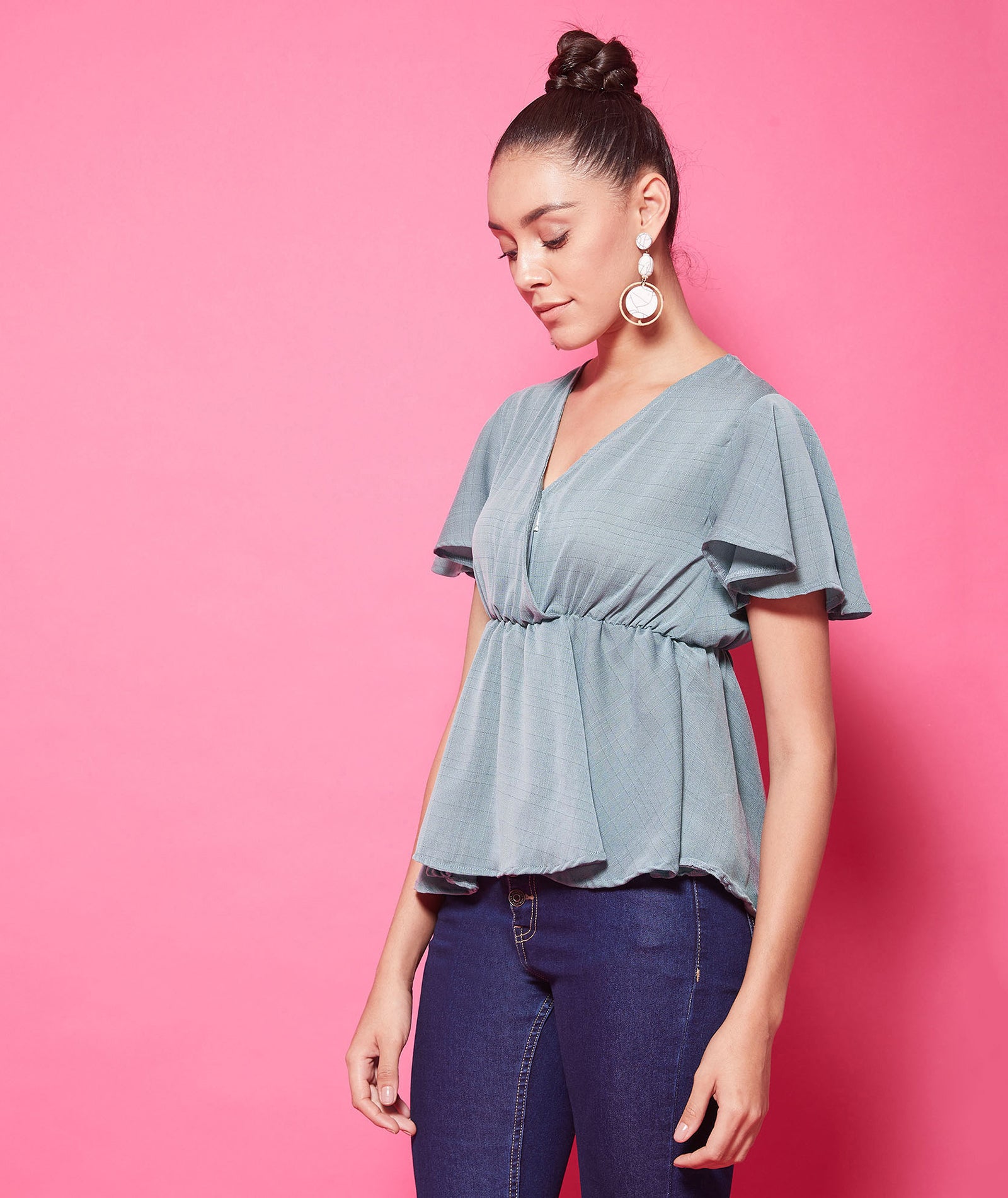 This model has a height of 5 feet 7 inches and is wearing a Top of Size "S"