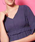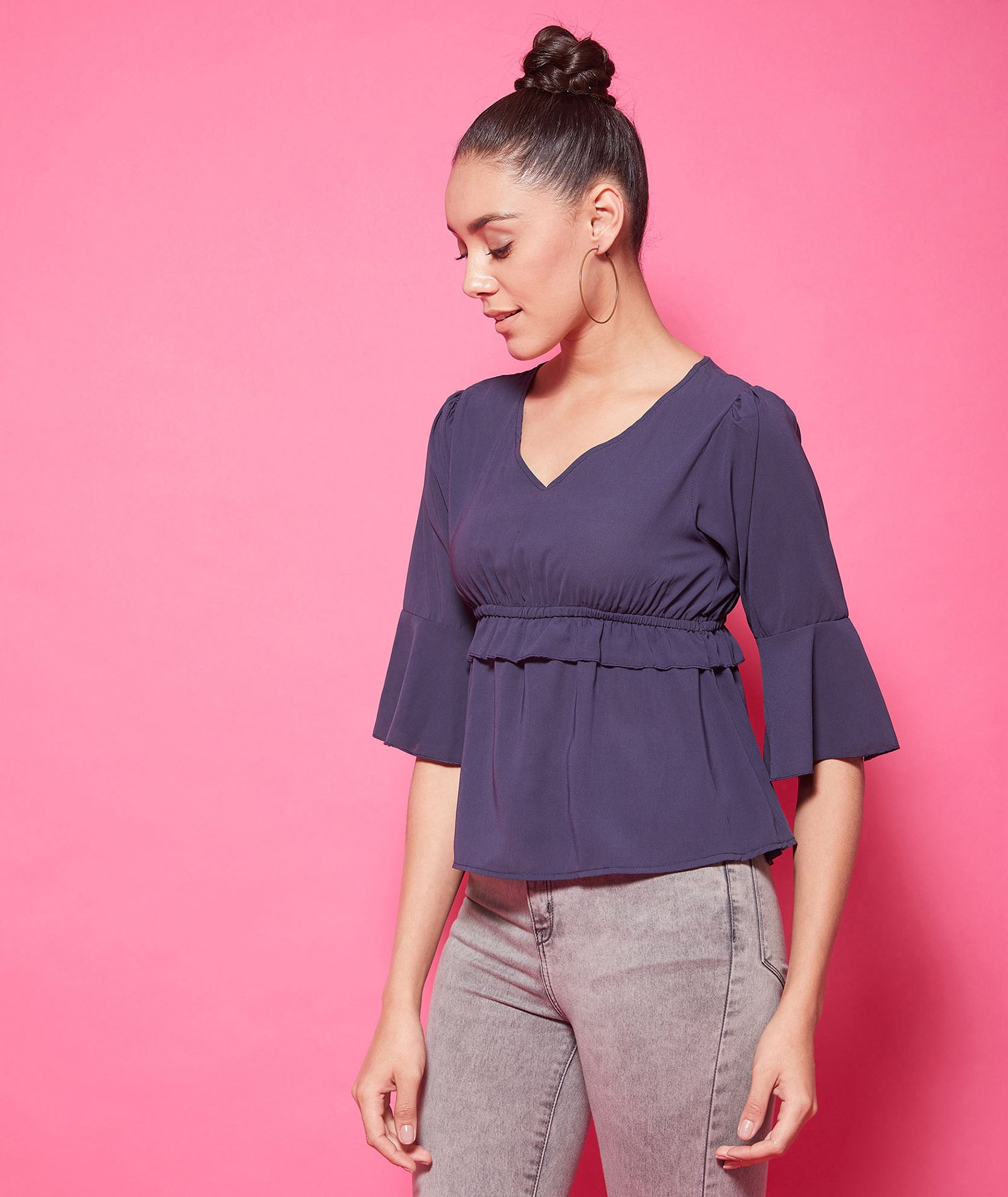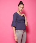 This model has a height of 5 feet 7 inches and is wearing a Top of Size "S"