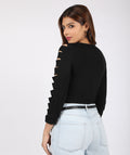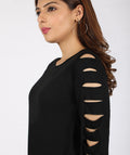 Chimpaaanzee Women Ripped Sleeve Cropped Black Tee